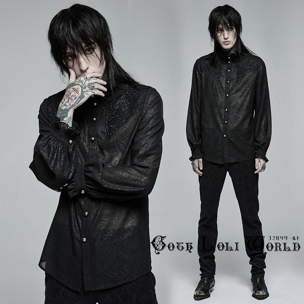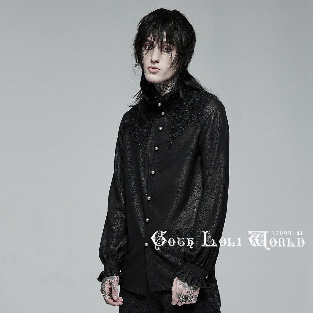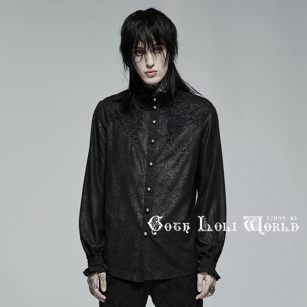 WY-1380XCM-BK-S エレガントスタンドカラーフジャガード ブラウス メンズ 黒色 ゴスロリワールド ゴシック パンク ロック ビジュアル系 V系