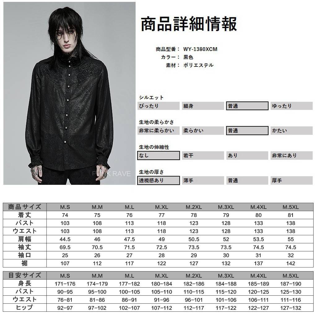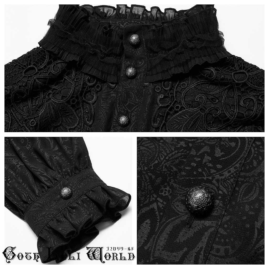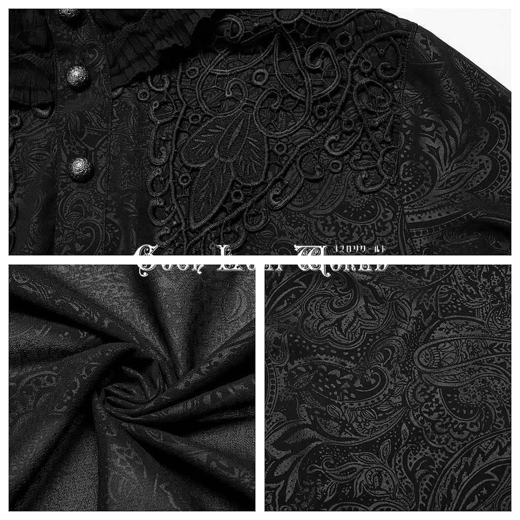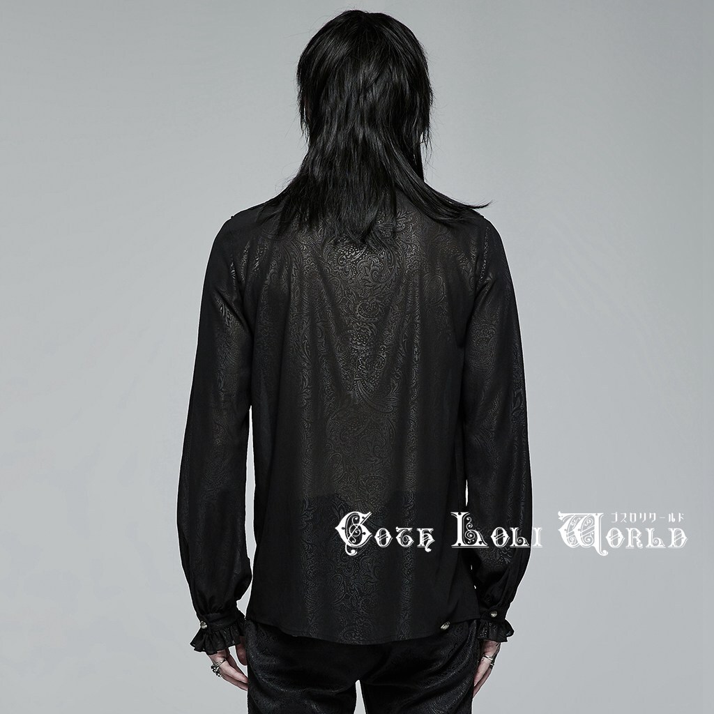 WY-1380XCM-BK-S エレガントスタンドカラーフジャガード ブラウス メンズ 黒色 ゴスロリワールド ゴシック パンク ロック ビジュアル系 V系