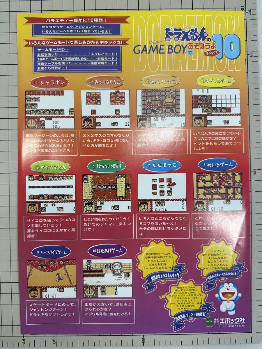 【貴重】GB ゲームボーイ ドラえもんのGAMEBOYであそぼうよデラックス10 チラシ フライヤー カタログ アーケード版