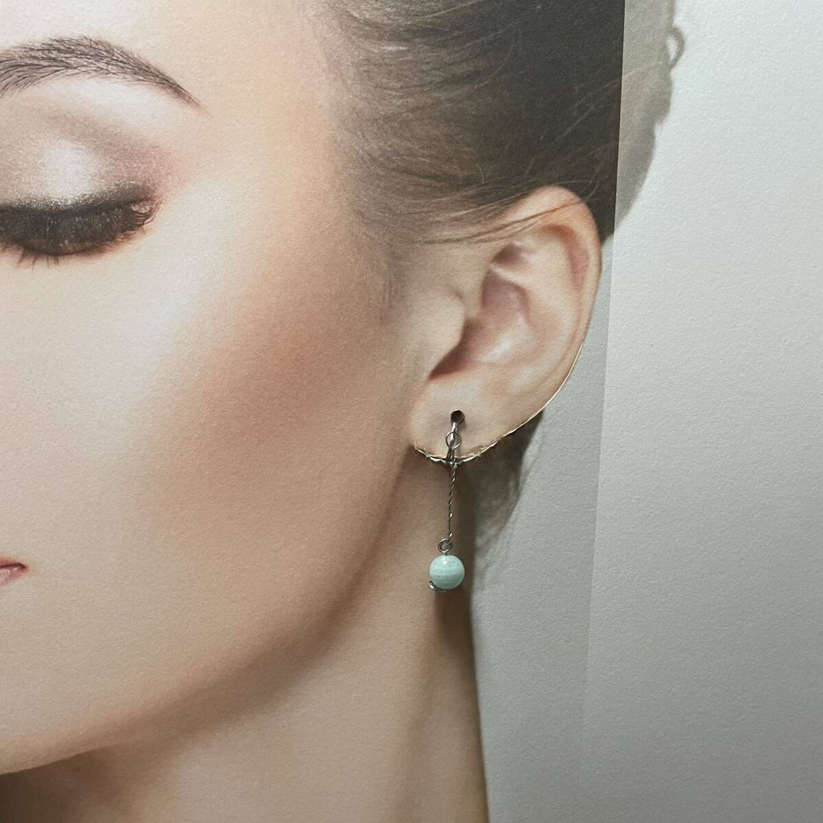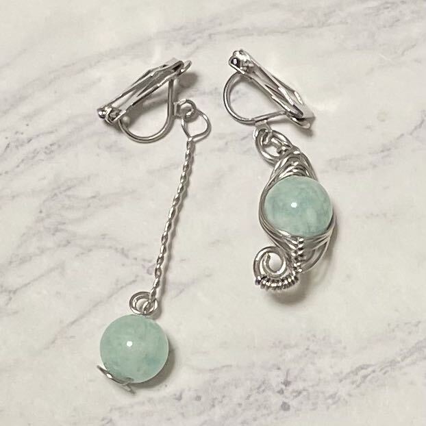 アシンメトリーデザインで制作したハンドメイドの天然石イヤリングです。