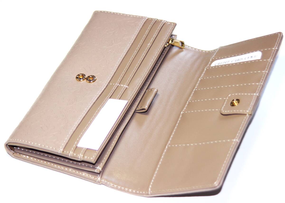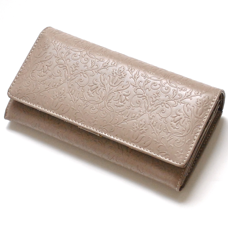 【クリスマス限定タイムセール】【送料込み】【限定】【新品】【税込み】牛革プラントパターン☆Wホック式☆アコーディオンウォレット GY