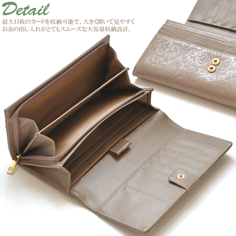 MOMO  牛革  プラントパターン  レディース  長財布  スマホも入る  草木柄  大容量  財布