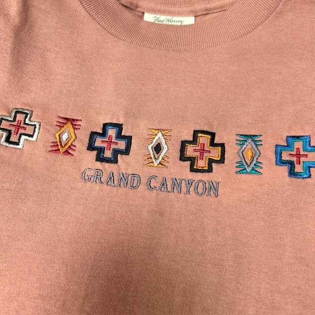 T●370 USA古着 deadstock 90s USA製 グランドキャニオン刺繍Tシャツ L 薄茶 オールド ヴィンテージ アメリカ古着 Fred Harvey
