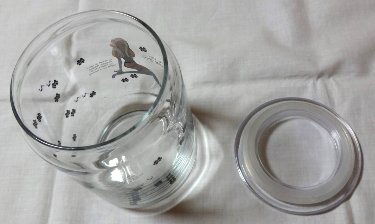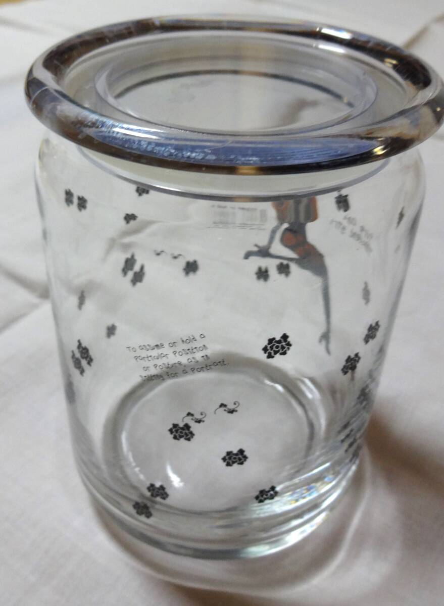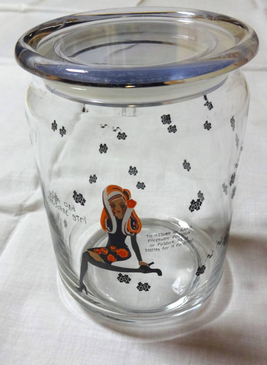 紅茶やコーヒーの保存に!USED!女の人の模様が描かれたガラス製密閉容器