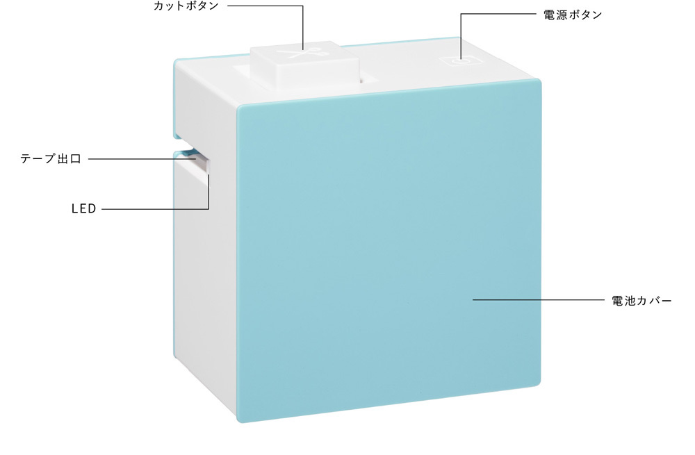 【本体寸法】約41(W)×46(D)×76(H)mm ※カットボタン含む 【質量】約132g(電池、テープ除く)