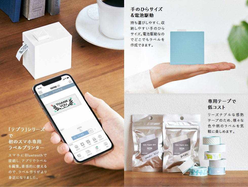 スマホで簡単操作、手のひらサイズのポケット「テプラ」。