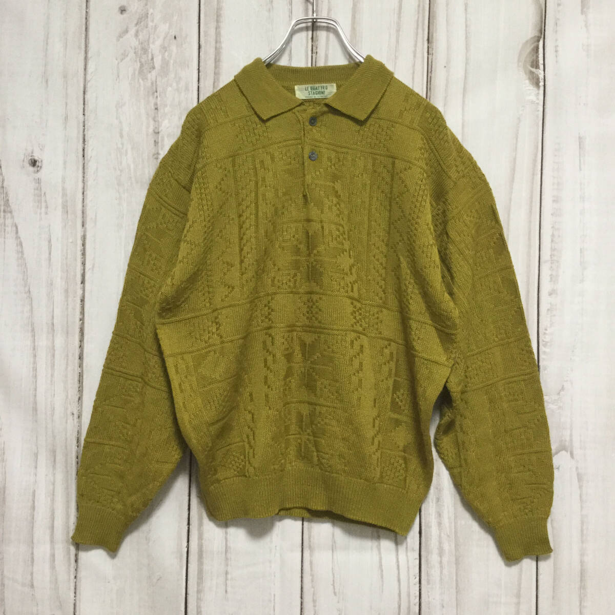 【ヴィンテージ 襟付き 3Dニット】 90年代 ハーフボタン セーター L相当 からし色 LE QUATTRO STAGIOI 長袖 古着[240111-007]