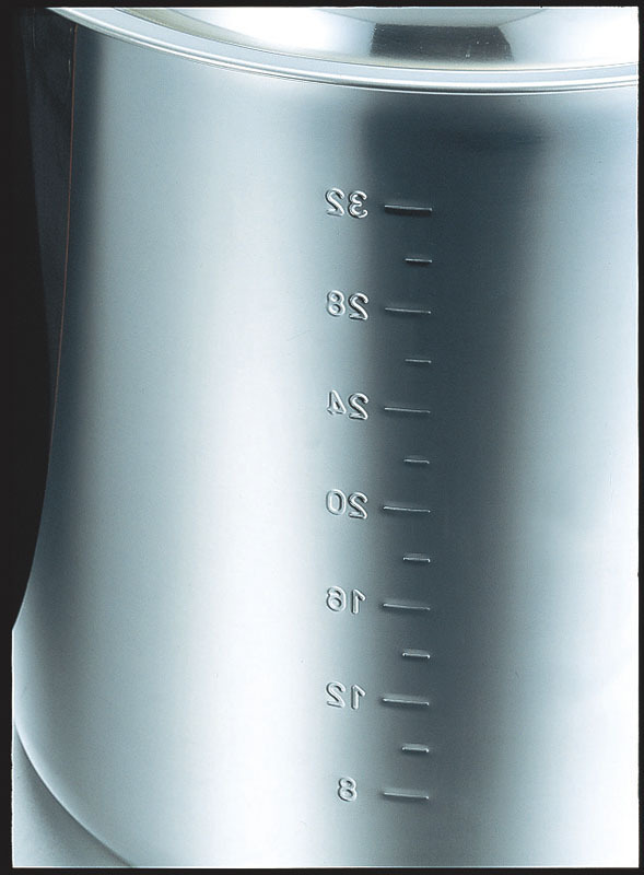 ●業務用厚底 高耐食ステンレスを使用した単層構造。見やすい目盛が付いて便利です。