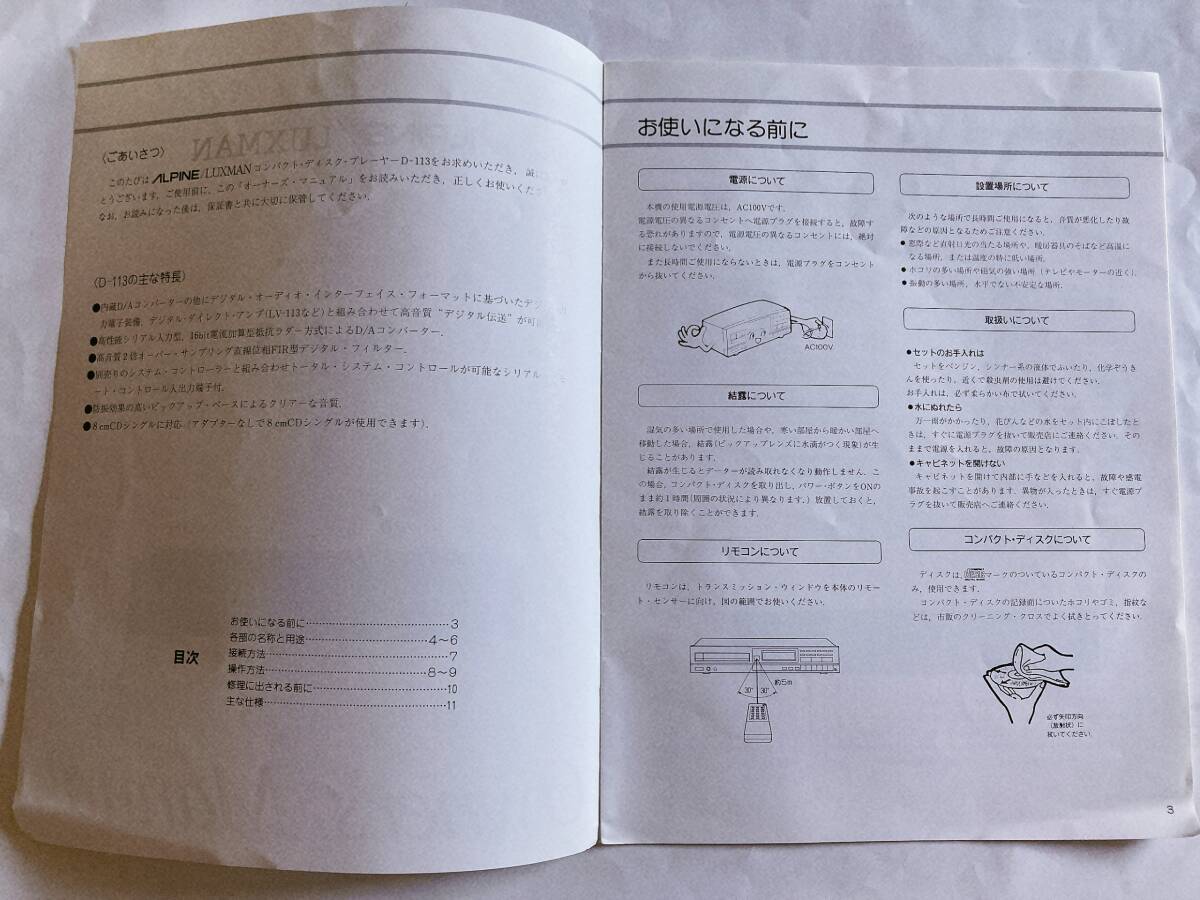 ALPINE/LUXMAN CDデッキ D-113 取説