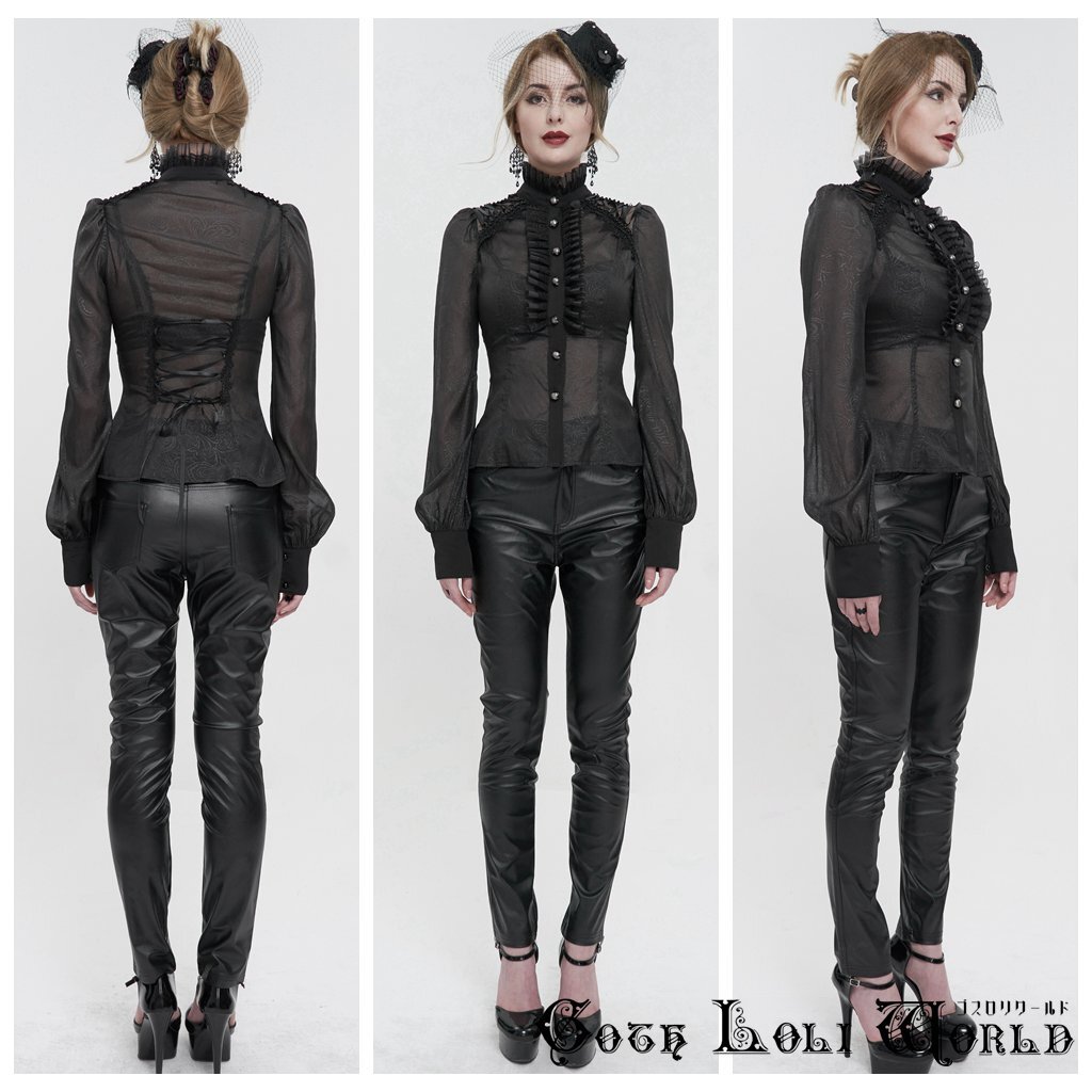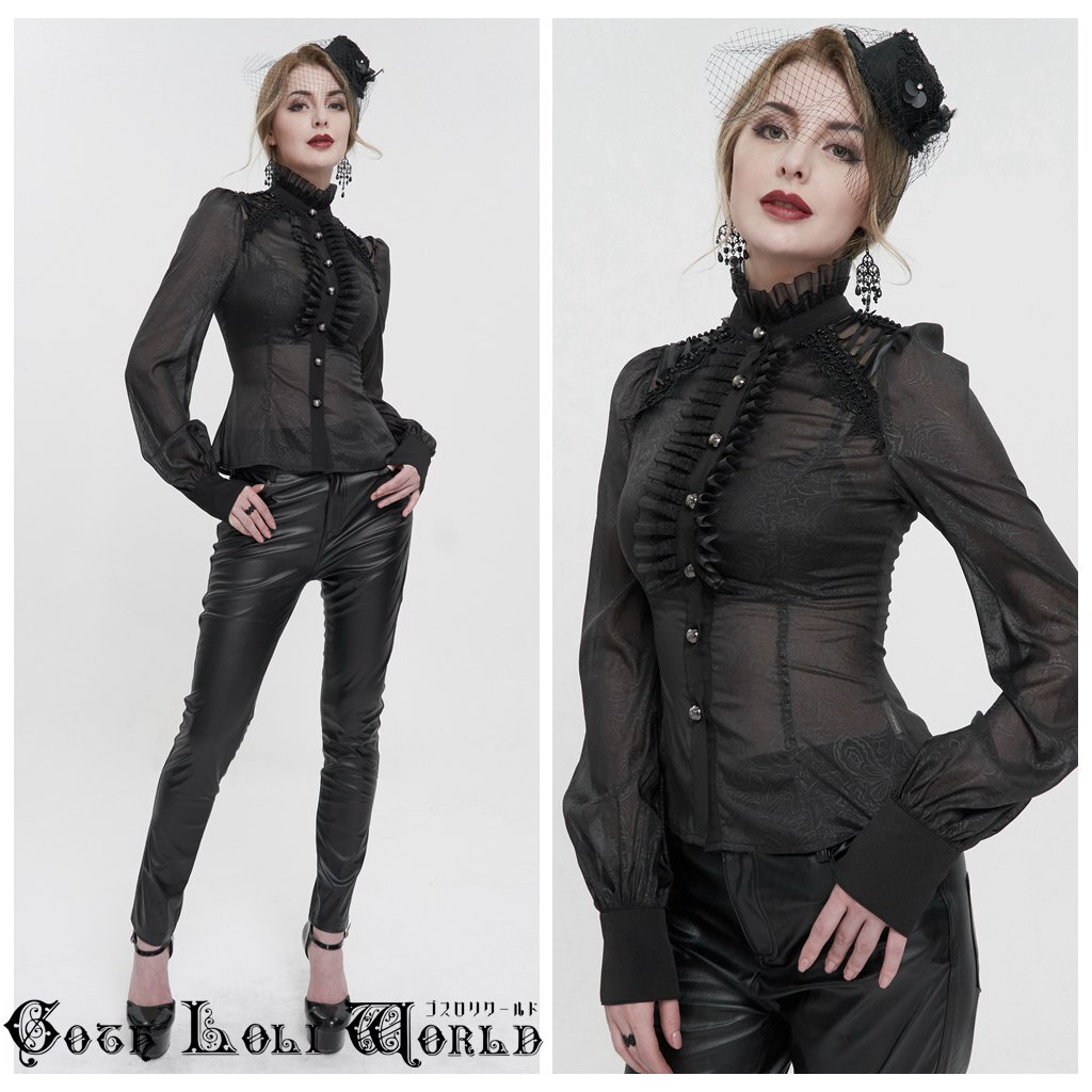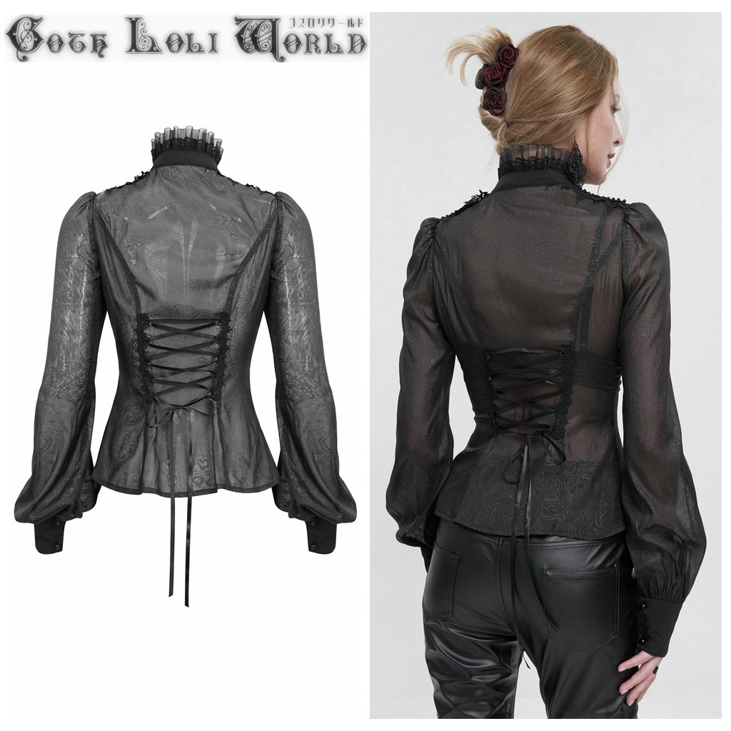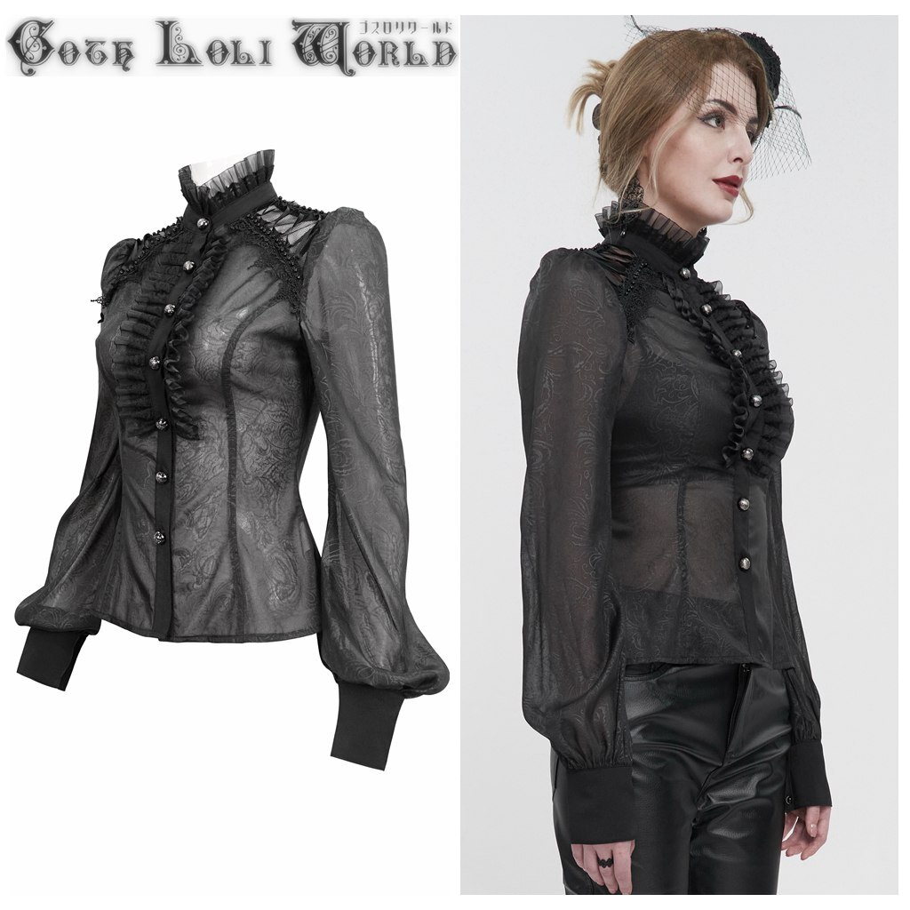 SHT090-M オールシースルーフリルスタンドカラーブラウス ゴスロリワールド ゴシック パンク ロック ロリィタ ビジュアル系 V系