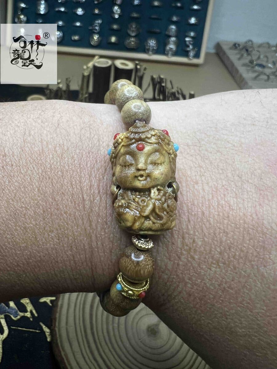 商品名:天然美しい彫刻 ミニ渡母緑檀木 ブレスレット