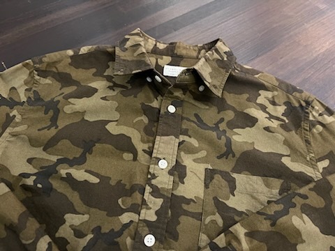 L276 メンズ シャツ GLOBALWORK グローバルワーク 長袖 迷彩 カモフラージュ 柄 カーキ ミリタリー 細身 スリム / M 全国一律送料520円