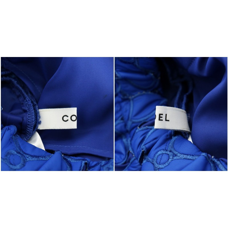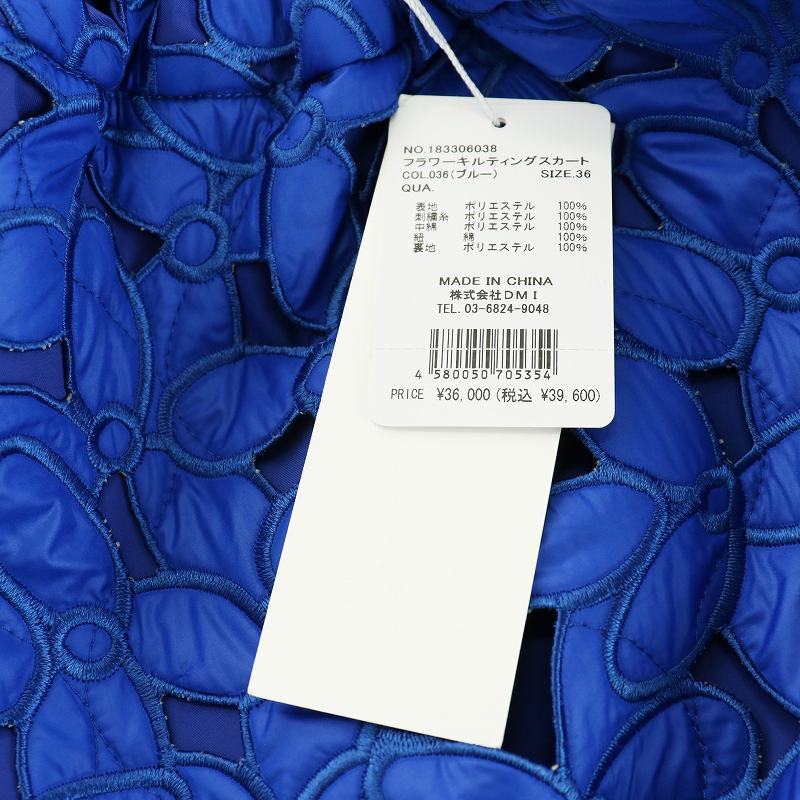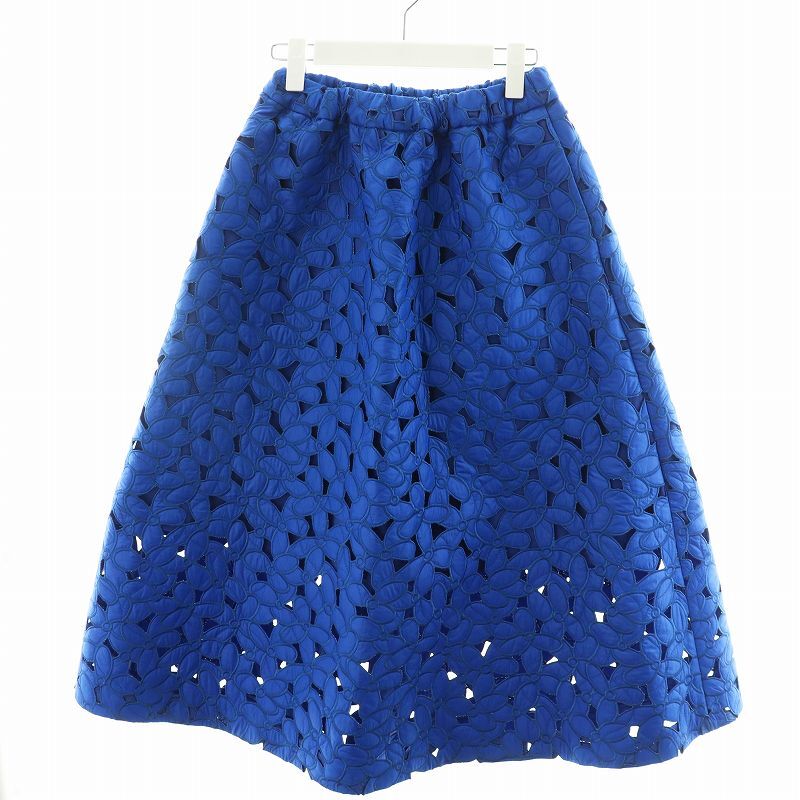 未使用品 コエル COEL フラワーキルティングスカート フレアスカート ミモレ ロング 36 S 青 ブルー 183306038