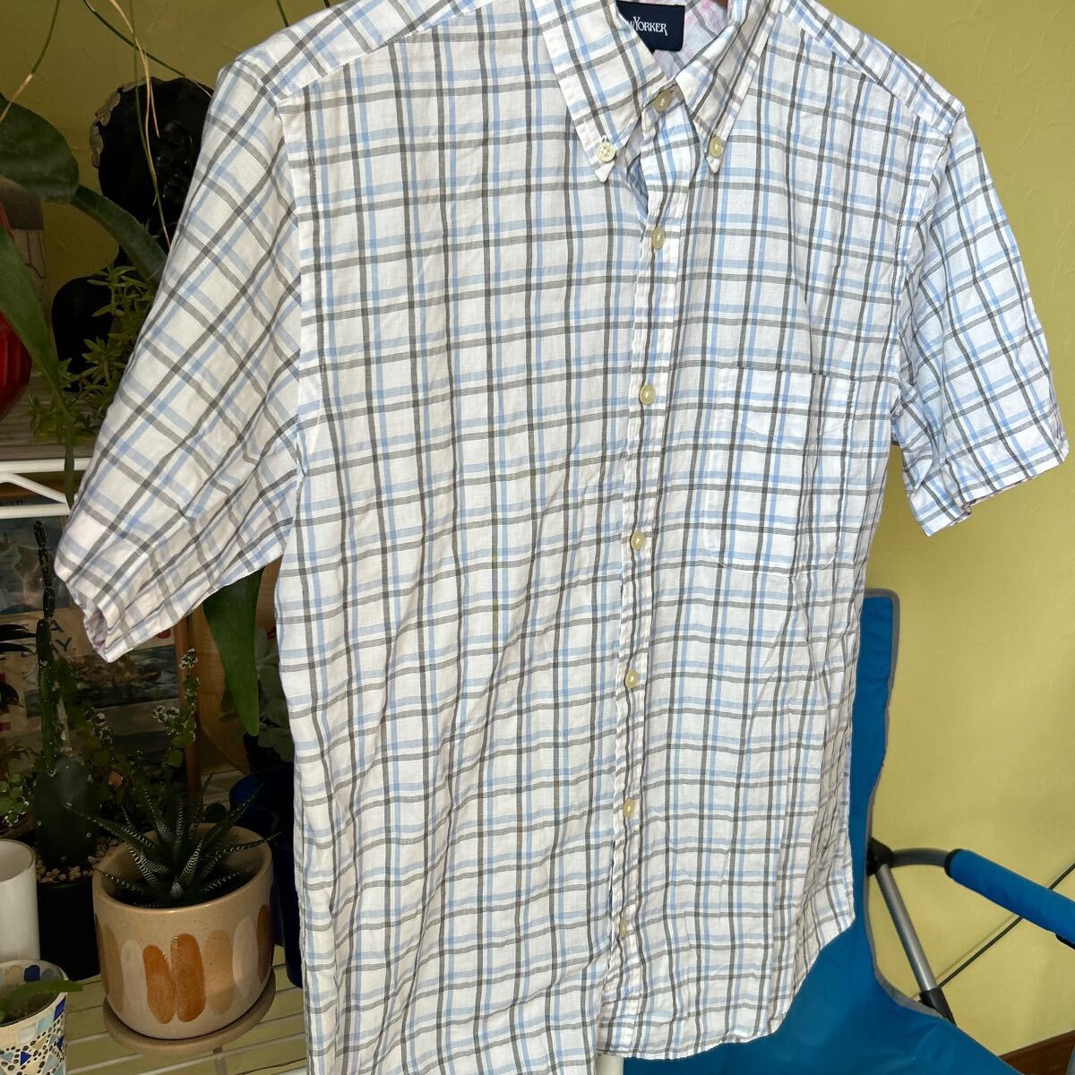 サイズL 実寸約着丈74(襟付根から裾先端)、肩幅47(両肩縫目直線)身幅59(両脇下縫目直線)多少の誤差はお許しください。良い雰囲気です。さらりとした綿100 チェック ボタンダウン できる限りダメージは説明させていただきますが、こちらが気づかない程度のわずかなしみ、よごれ、