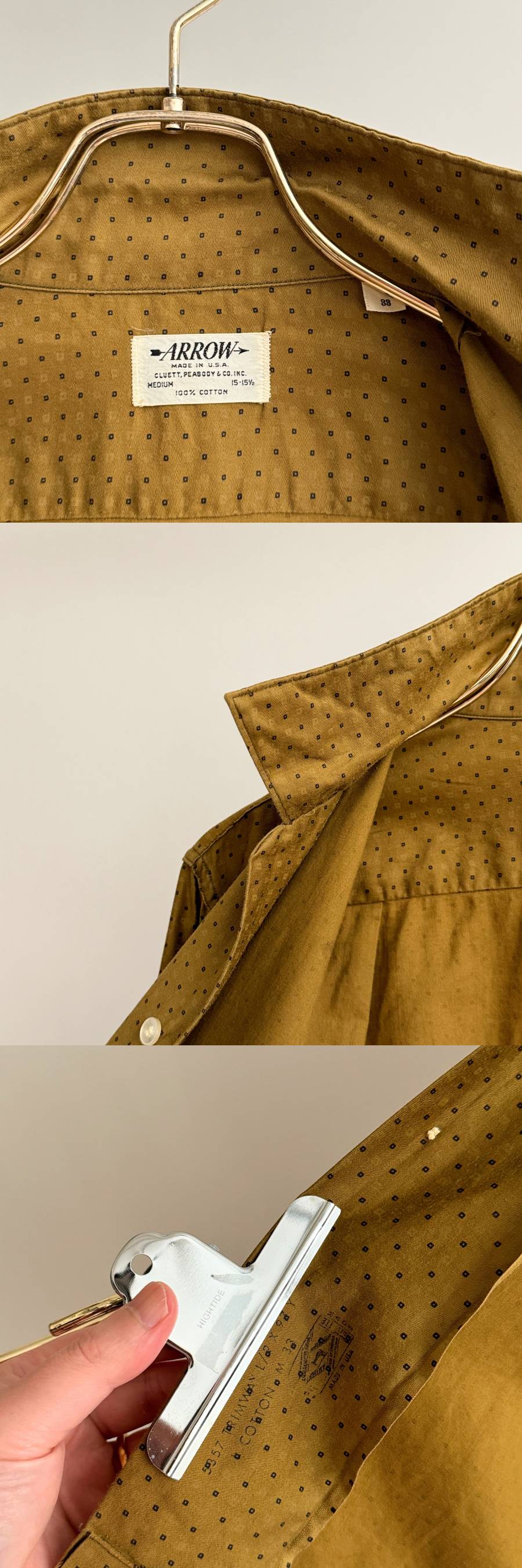 希少《 Good Condition / ARROW 》50s 60s 美品【 アロー からし色 マスタード コットン ドット シャツ M ビンテージ 】