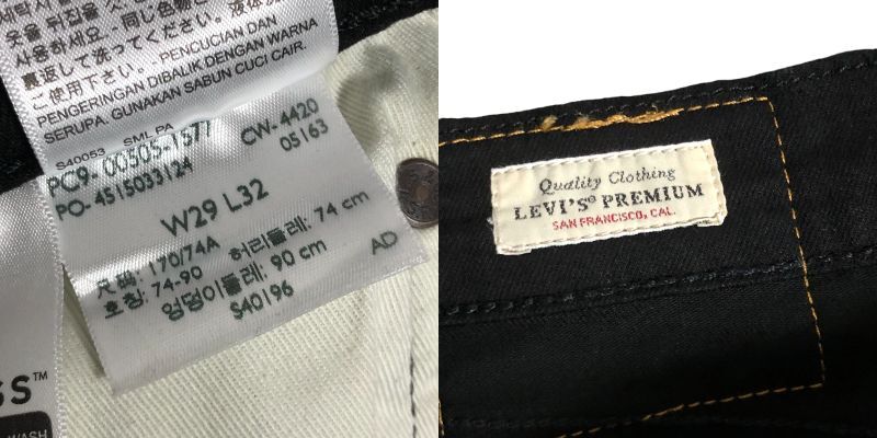 Levi's リーバイス 00505-1577 ブラック デニムパンツ レギュラーストレート ストレッチ 29 黒 ビッグE ジップフライ A40