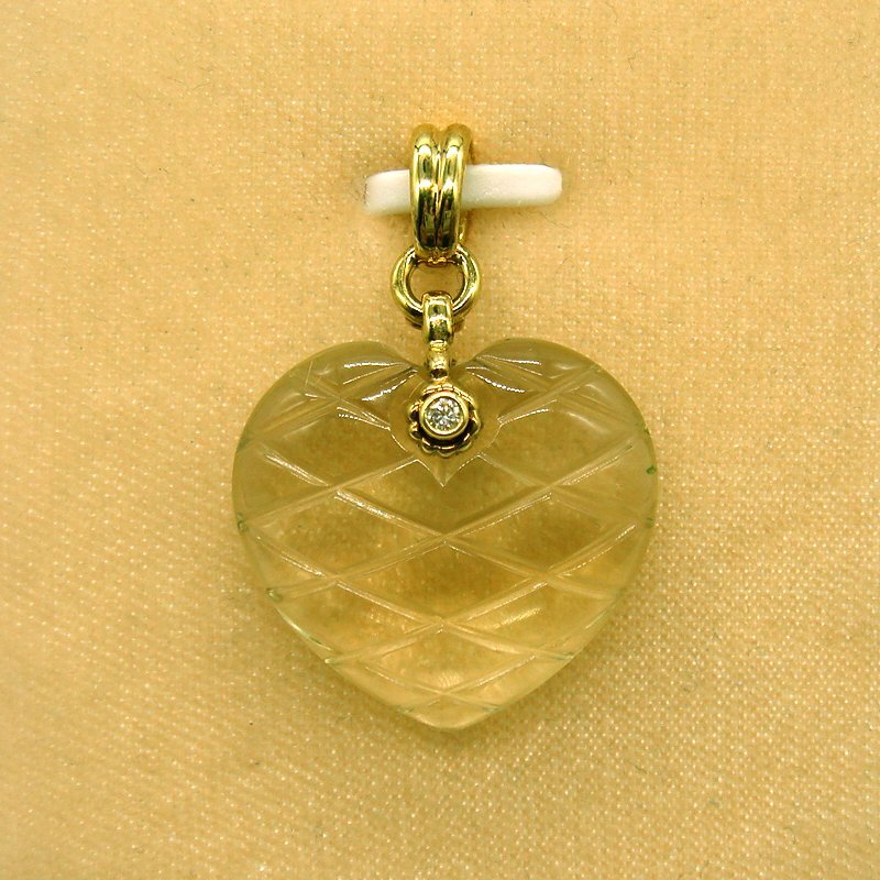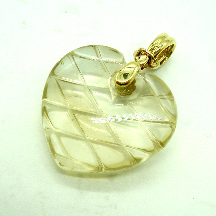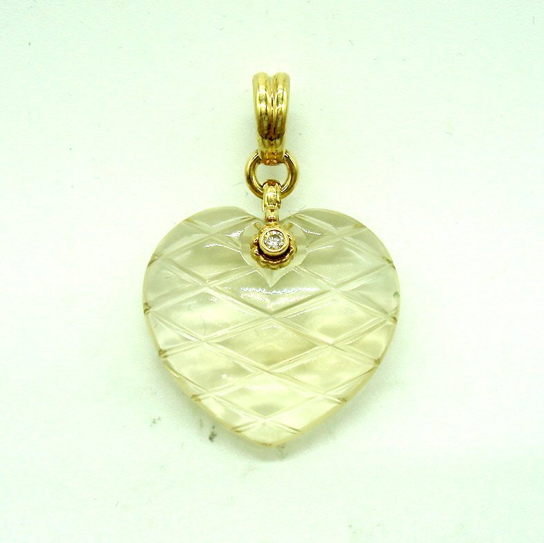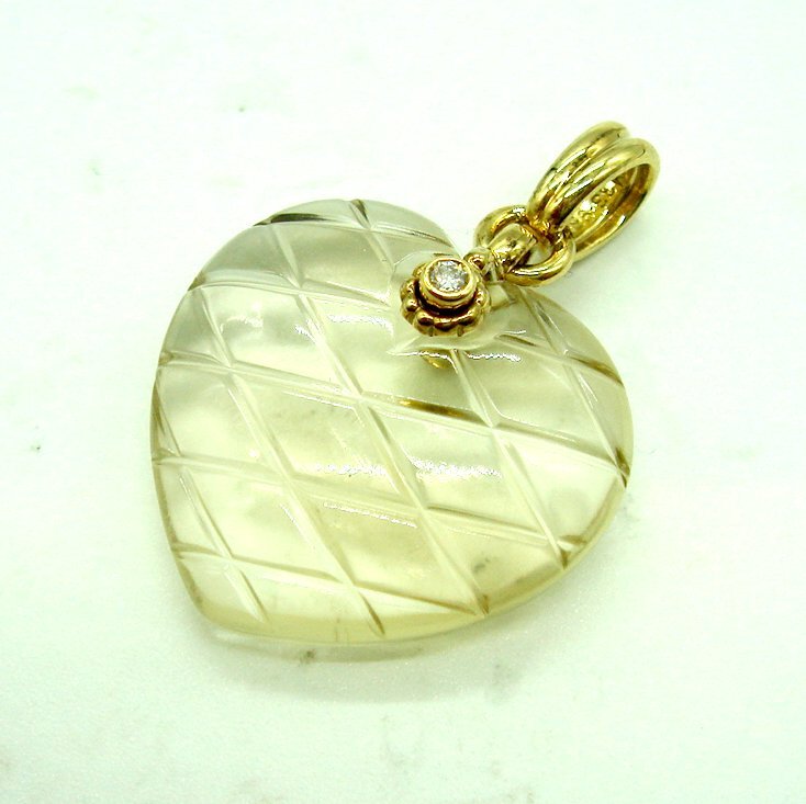 大きなボリュームあるハート型の表面に斜め格子状の切子式カットを入れた、石の存在感を全面に出したペンダントです。
