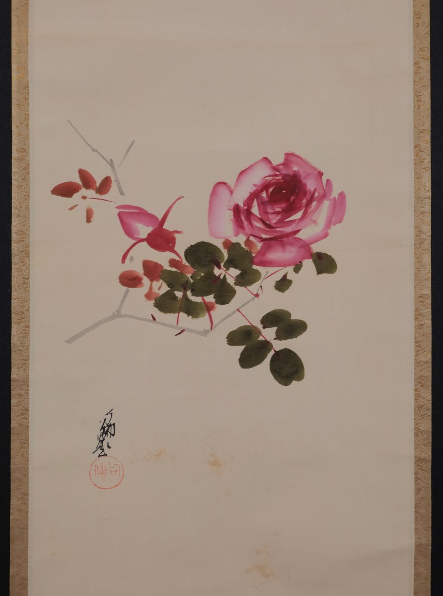 【模写】吉】11001 大谷句仏 薔薇画賛 共箱 浄土真宗 東本願寺23世 大谷光演 愚峰 仏教 書 茶掛け 茶道具 掛軸 掛け軸 骨董品
