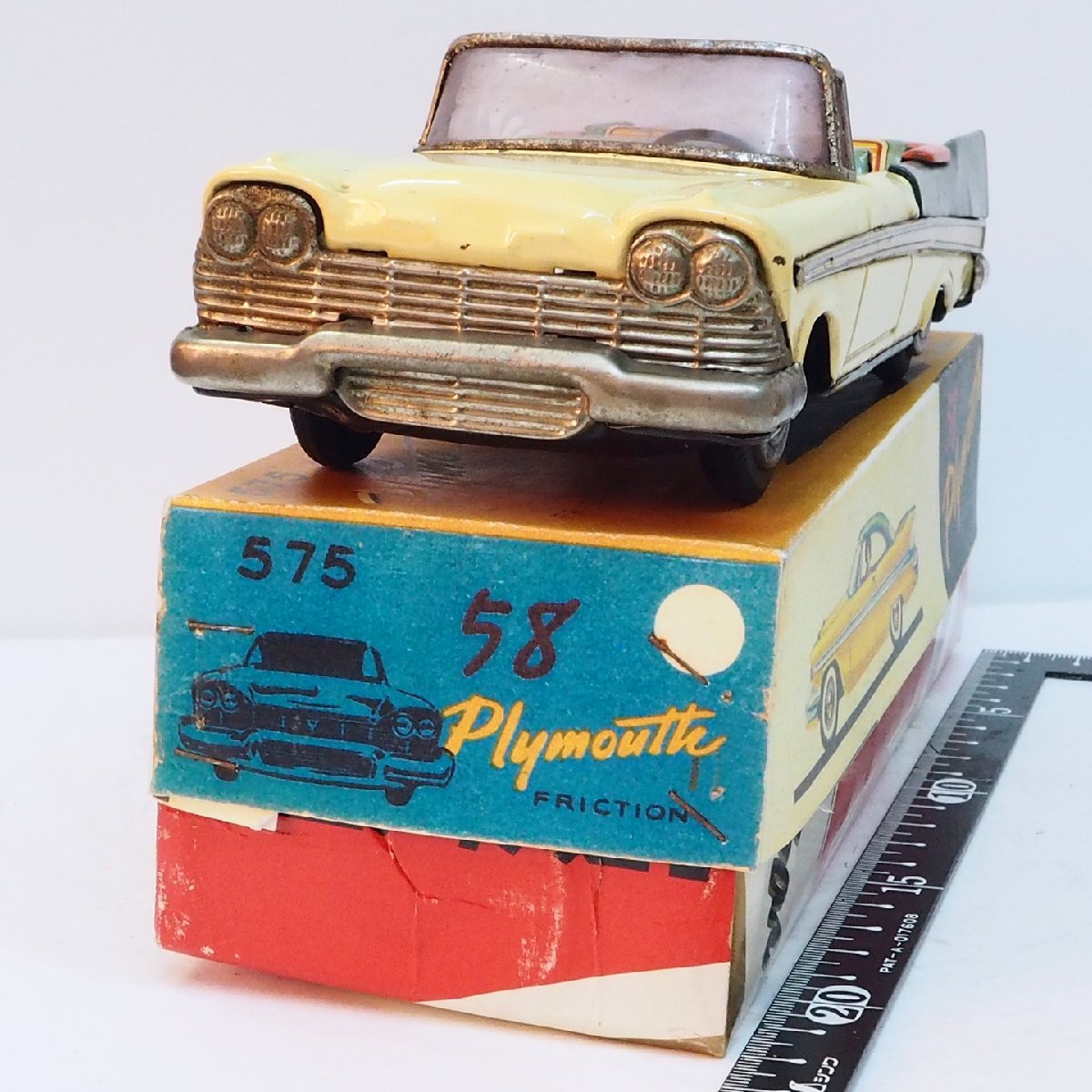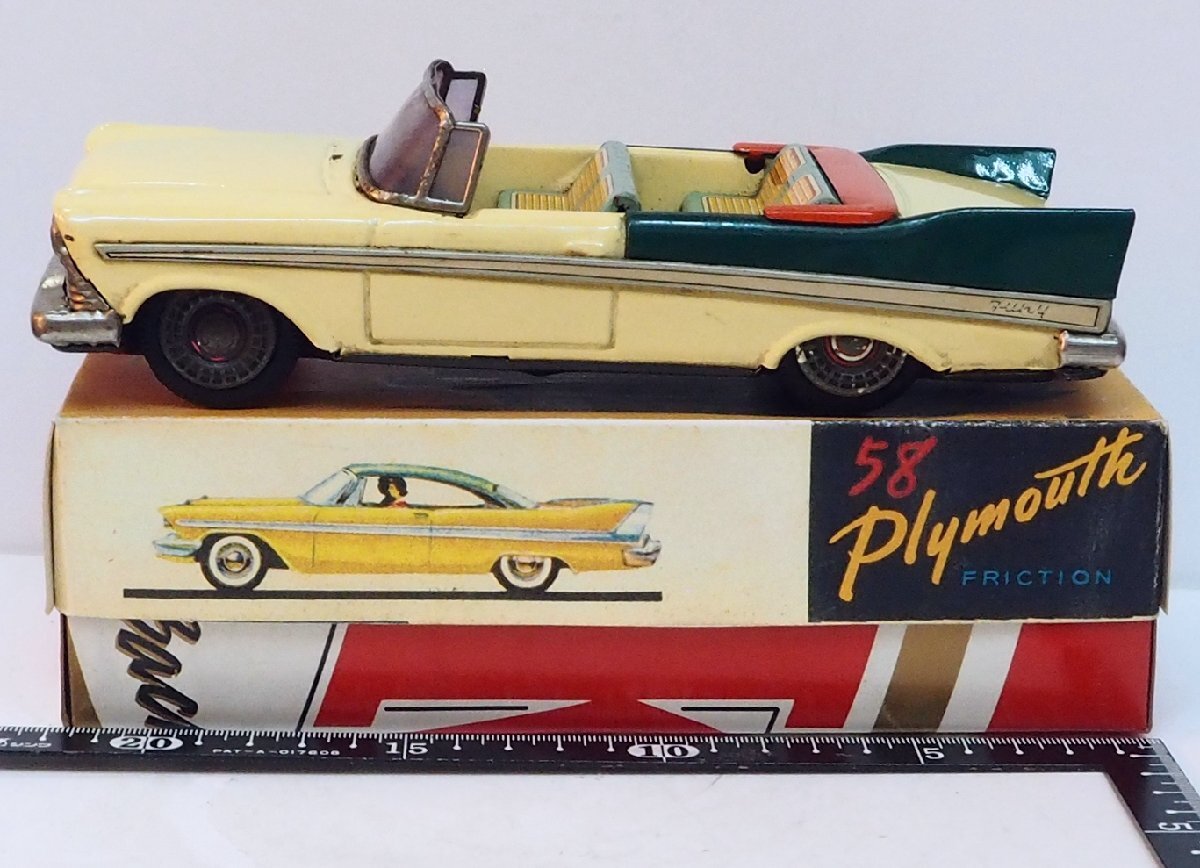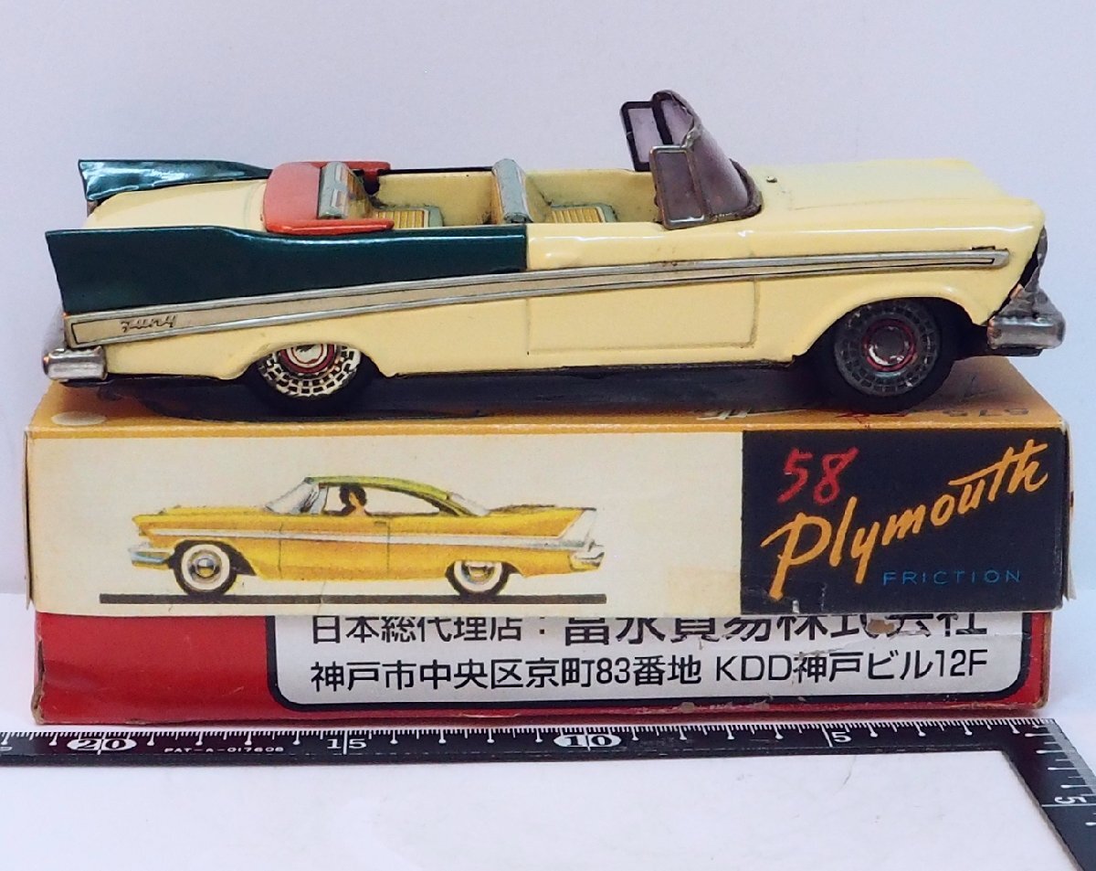 萬代屋【50s Plymouth Fury Convertibleプリムス フューリー コンバーチブル白】tin toy car ブリキBC BANDAIバンダイ赤箱【箱コピー】0123