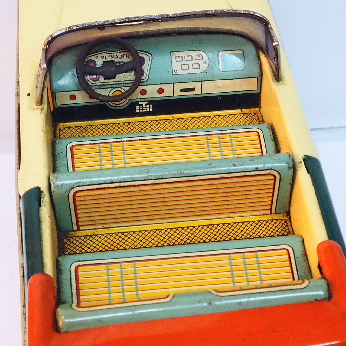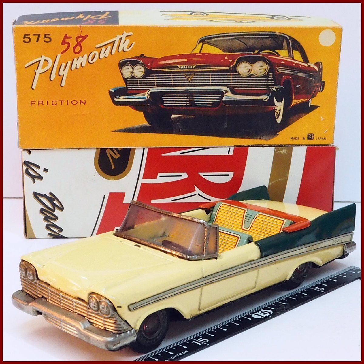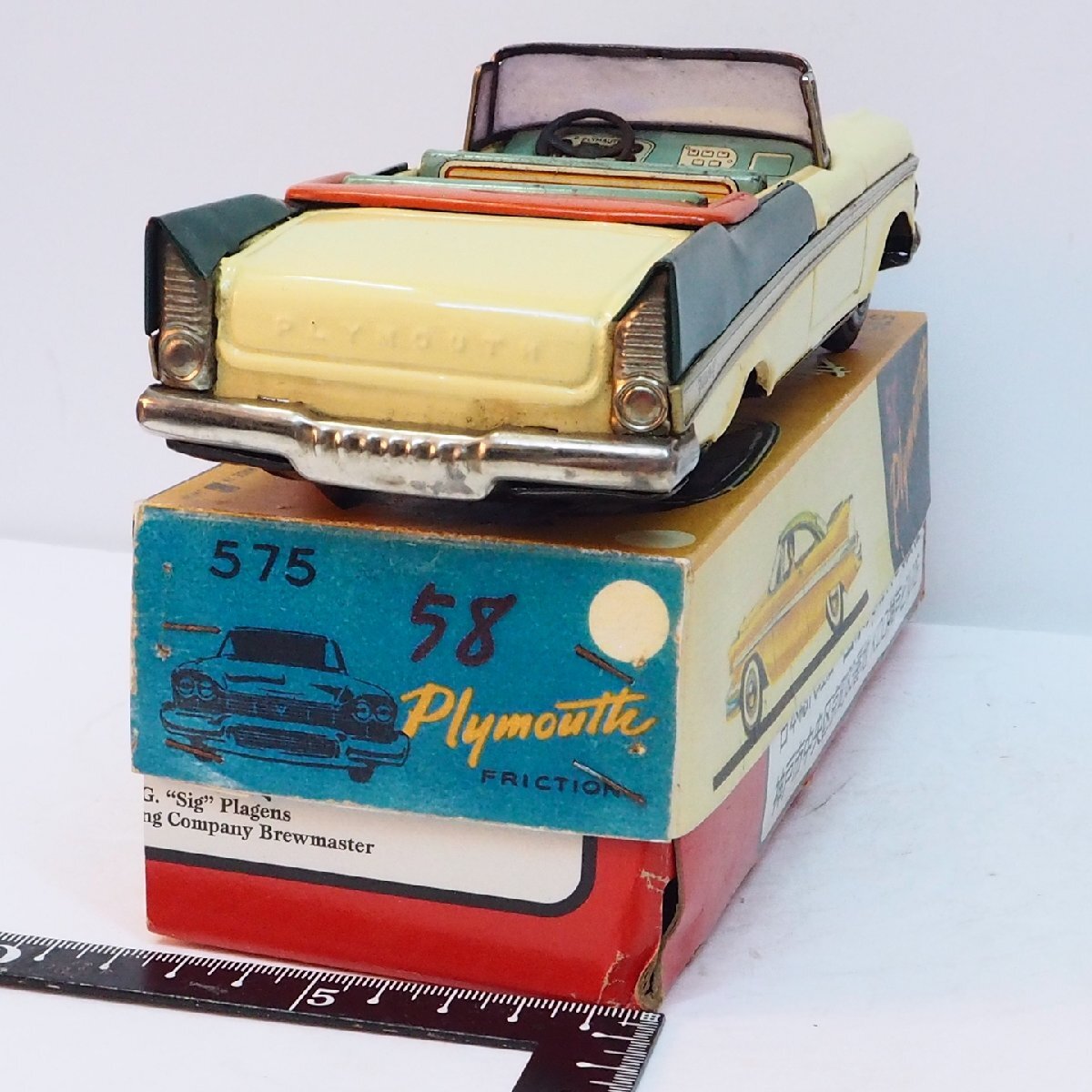 萬代屋【50s Plymouth Fury Convertibleプリムス フューリー コンバーチブル白】tin toy car ブリキBC BANDAIバンダイ赤箱【箱コピー】0123