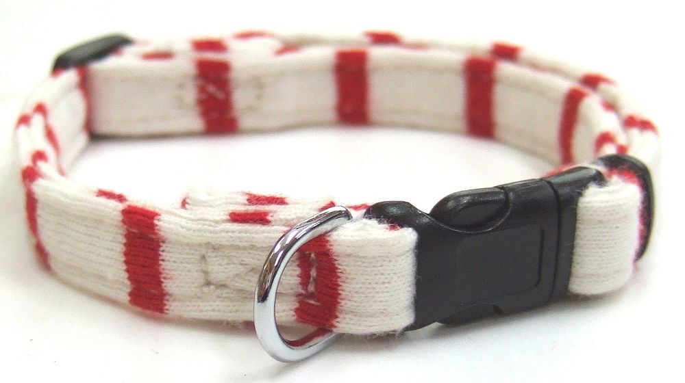 コットン製のニット生地で作っているので、柔らかく被毛にも優しいワンタッチバックルの首輪です。