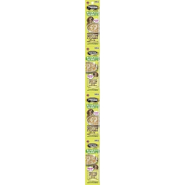 【分類】犬用フード レトルトパウチ【原材料】鶏むね肉、鶏ささみ、にんじん、とうもろこし、グリーンピース、増粘安定剤・加工デンプン【保証成分】粗たん白質 7.4%以上 粗脂肪 0.6%以上 粗繊維 0.5%以下 粗灰分 1.2%以下 水分 89.0%以下【賞味期限】24ヶ月【商品サイズ】584×45×15(mm)【原産国または製造地】日本