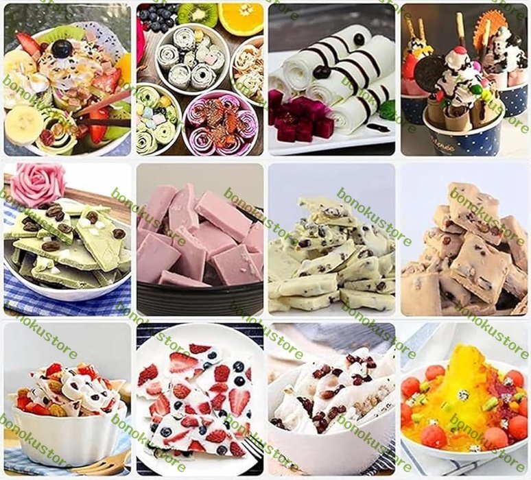 安定性と効率的な温度調節のために設計されたアイスクリームロールメーカーマシンには、ゴム足や大きな通気口などの機能に加えて、2 つのフードパドルの利便性が追加されています。