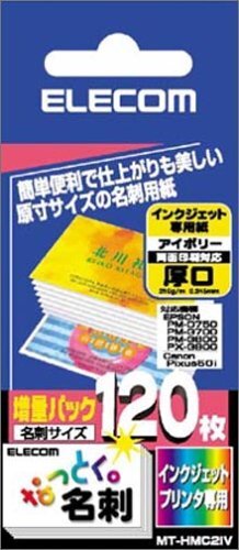 | ●名刺サイズにカットされたカット紙名刺です。●インクジェットプリンタ専用紙(アイボリー)●両面塗工仕様で、写真付き名刺の作成に適します / ● 印字面は両面塗工仕様で、デジカメ画像などの写真付き名刺の作成に適します ● 名刺サイズにカットされたカット紙名刺です。プリンターにそのまま差し込んで印刷できます ● インクジェットプリンタ専用紙(アイボリー) ● 紙厚(厚手)210g/m 0.245mm ● 120枚入り(両面) ● 名刺サイズでカットされているからエッジの仕上がりがきれい ● インクジェット専用紙ですのでインクジェットプリンタ以外のプリンタ、コピー機などではご使用出来ません ● 名刺サイズ(91x55mm) ● 対応プリンタ:EPSON PM-D750・PM-G700・PM-G800・PX-G900、Canon PIXUS 50i / |