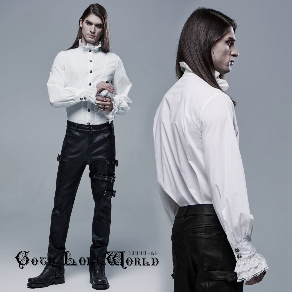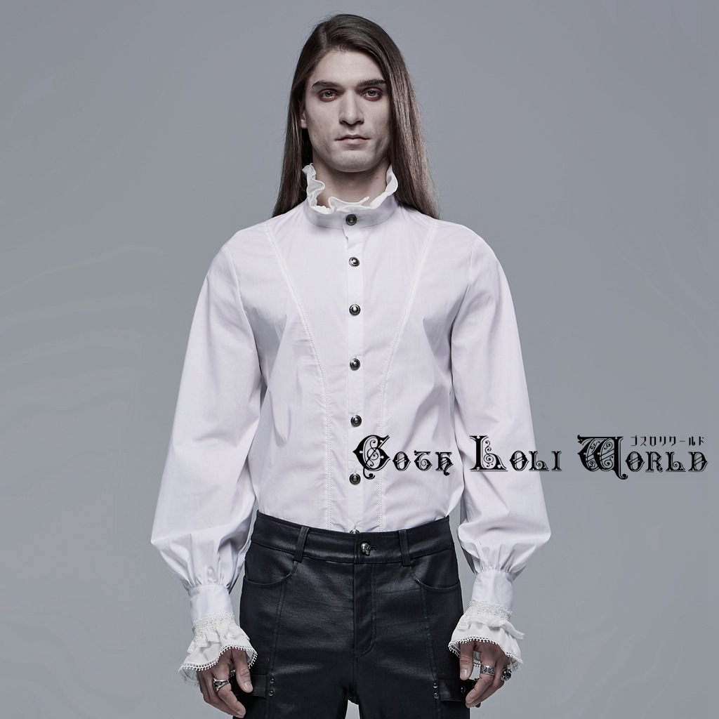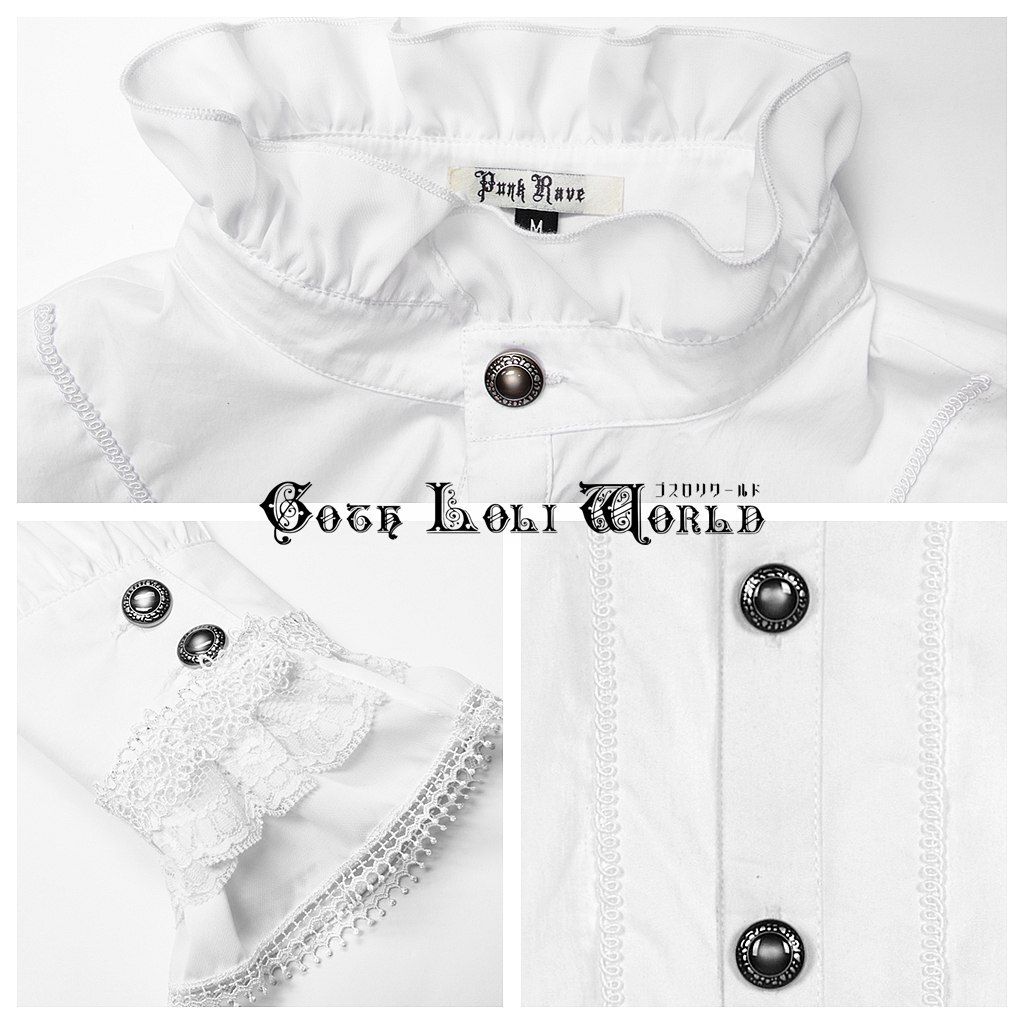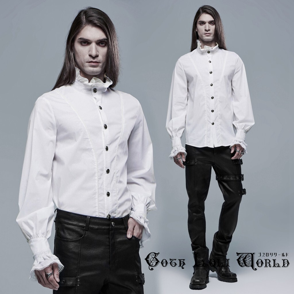 WY-1320CCM-WH-L パフスリーブスタンドフリルカラー ブラウス メンズ 白色 ゴスロリワールド ゴシック パンク ロック ビジュアル系 V系