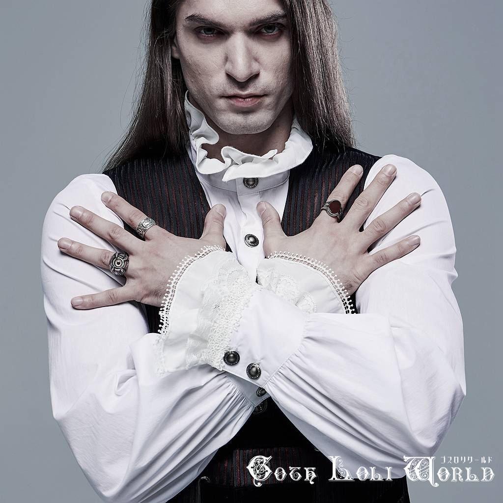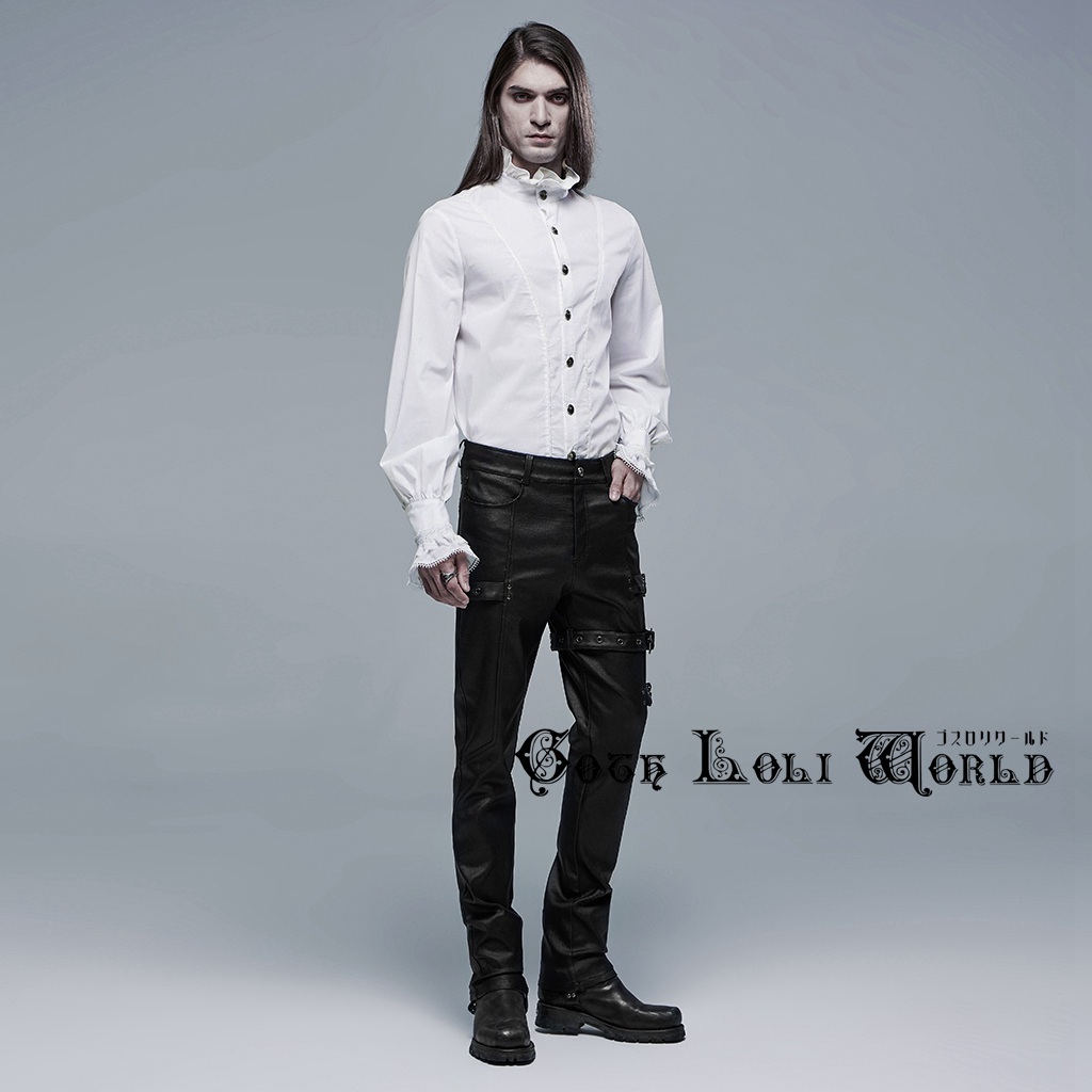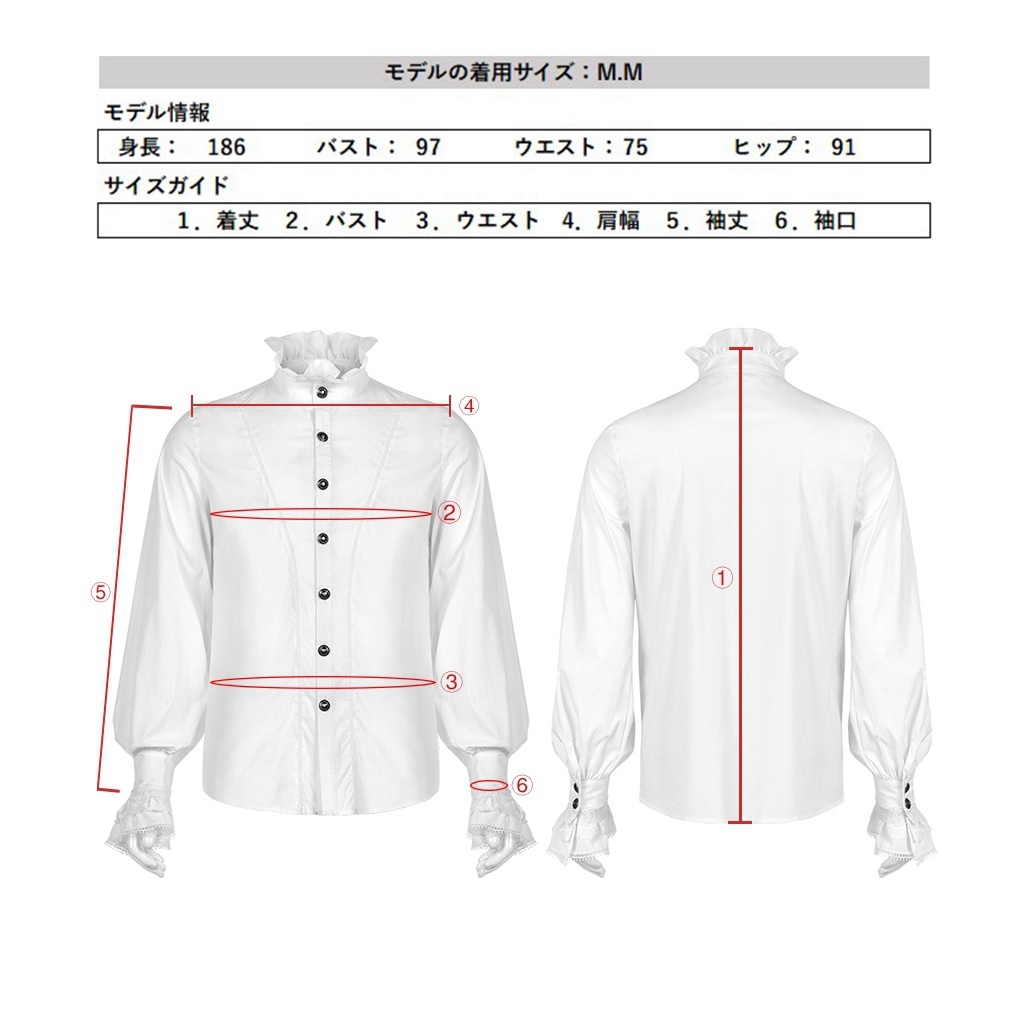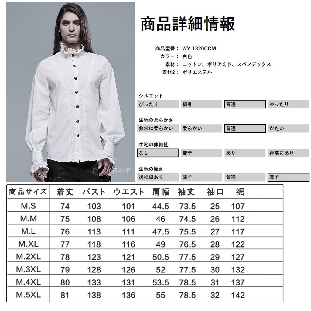 WY-1320CCM-WH-L パフスリーブスタンドフリルカラー ブラウス メンズ 白色 ゴスロリワールド ゴシック パンク ロック ビジュアル系 V系