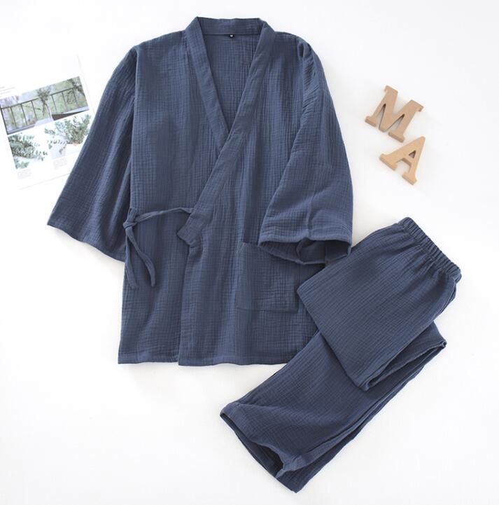 夏物 羽織 メンズ 甚平 3色選べる 綿 薄手 浴衣 上下セット セットアップ 和服 ルームウエア 部屋着 パジャマ 作務衣 ネイビー XL
