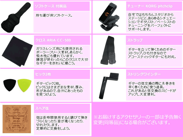 | 高いコストパフォーマンスが自慢のレジェンドアコースティック。初めてギターを触る方へはもちろん、気軽に弾けるギターが欲しい方へもお勧めです。 Specifications | |