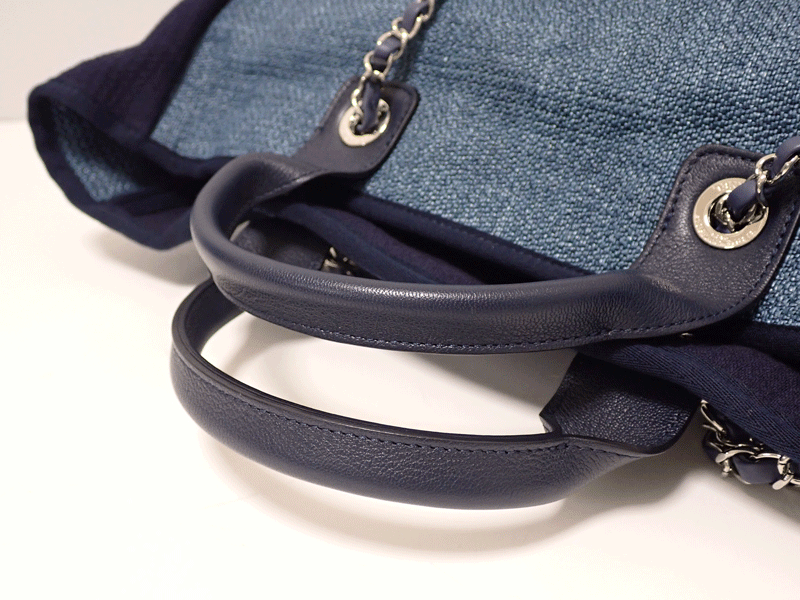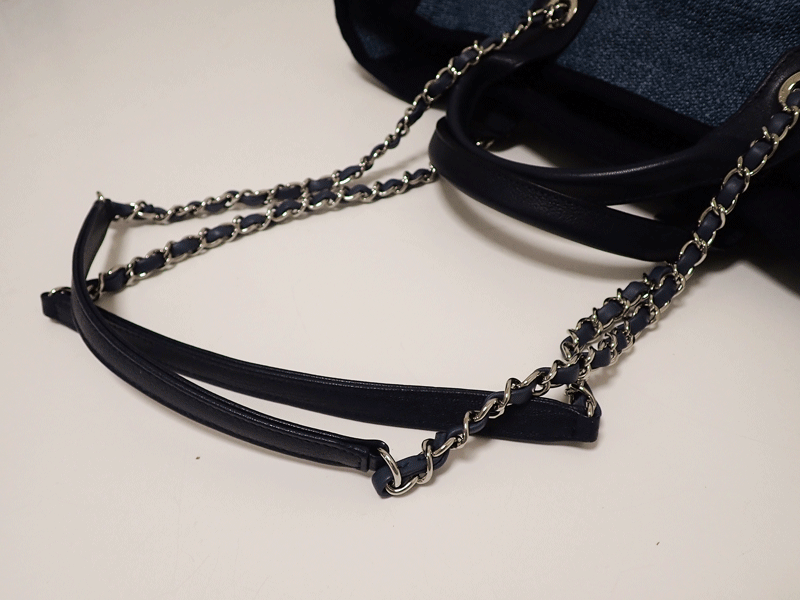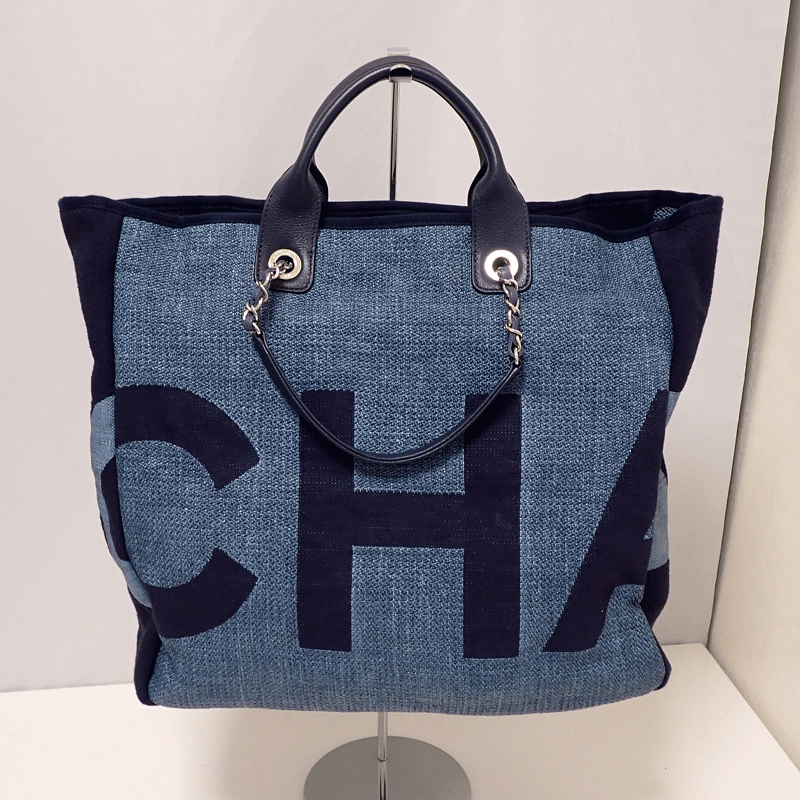 商品名 新品同様【CHANEL】シャネル ラージショッピングトートバッグ ブルー トート デニム ショルダー シルバー金具 2WAY A57162 送料無料!!