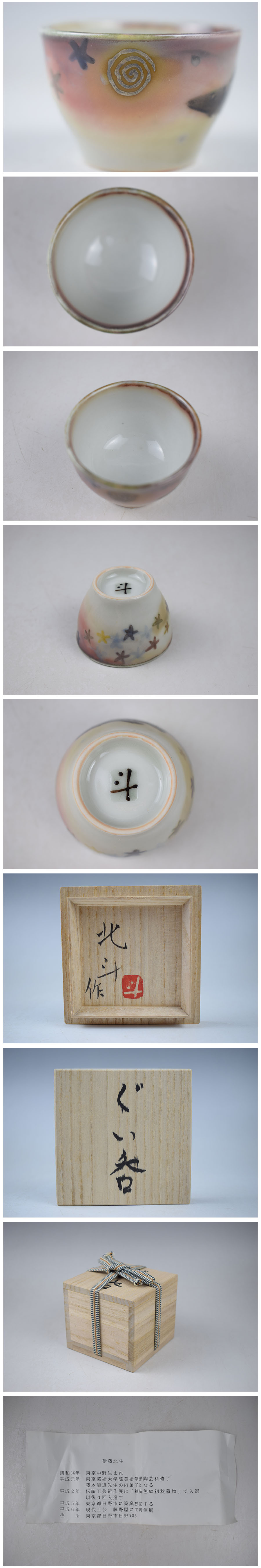 【伊藤北斗 色絵銀彩 ぐい呑 酒器 共箱 真作保証】