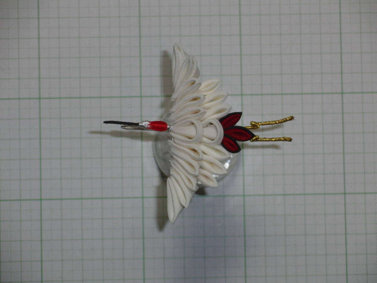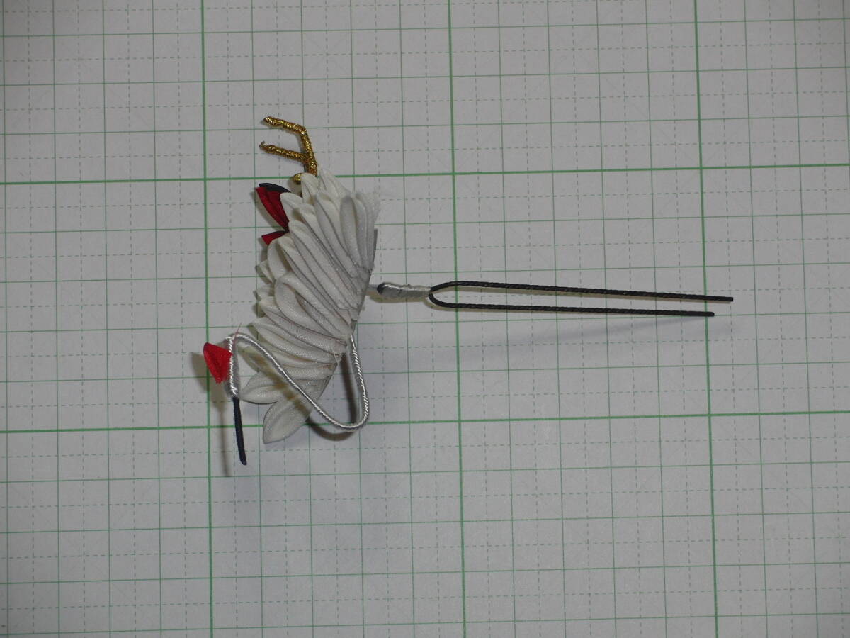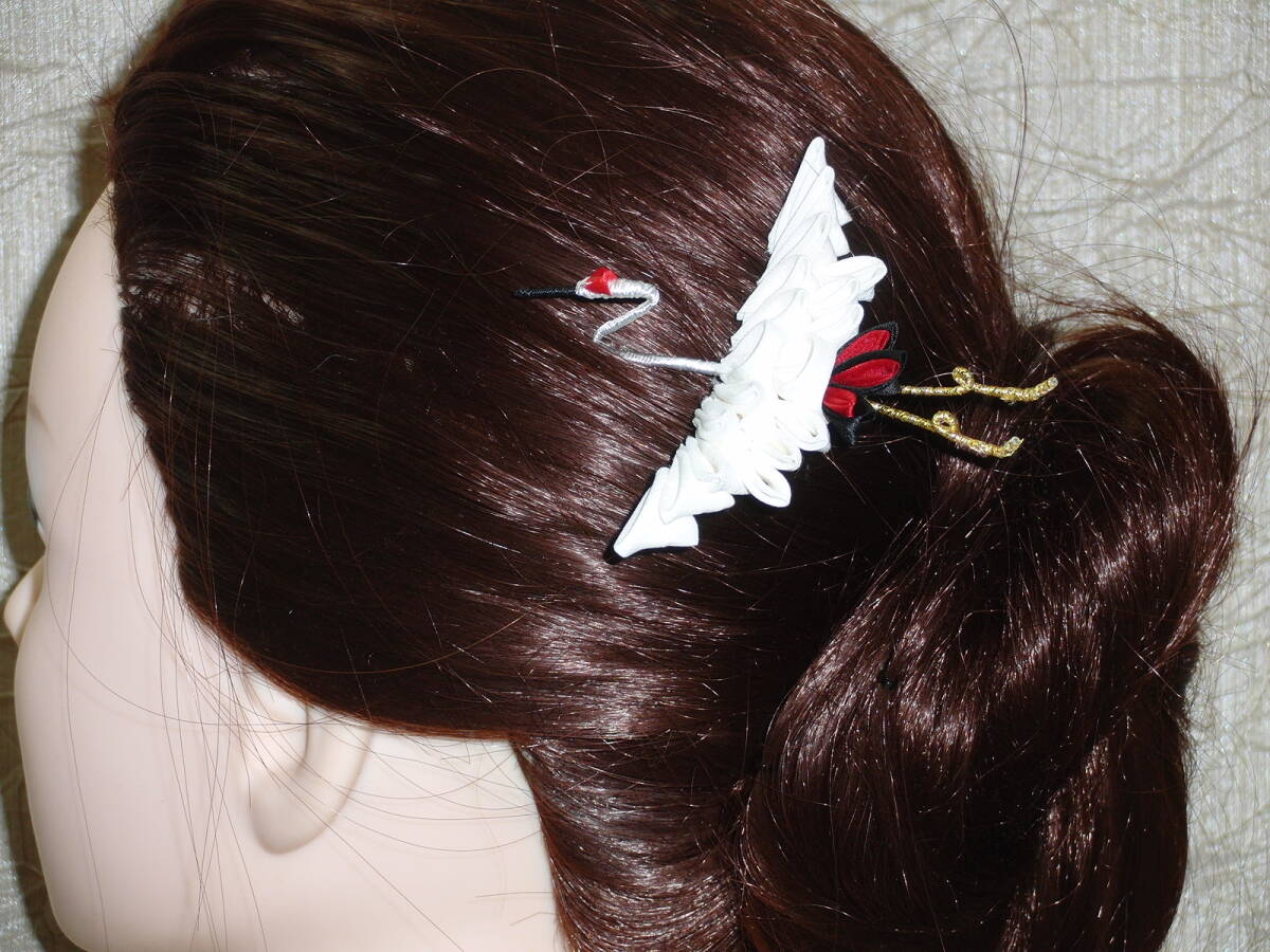 鶴だけでも素敵ですが、お花の簪と組み合わせると華やかにアレンジできます。