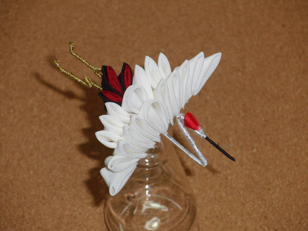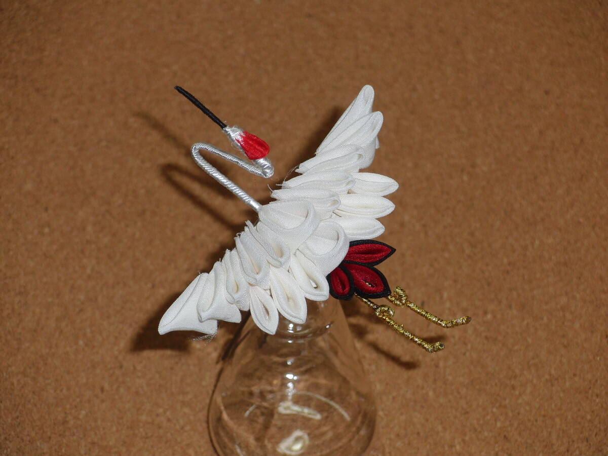 つまみ細工簪 ★鶴Ⅱ*金足 /Uピン #M052 成人式 卒業式 披露宴 お呼ばれ お正月 ミニかんざし
