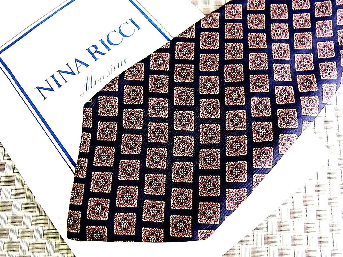 ♪34660C♪良品【花 デザイン スクエア 柄】ニナリッチ【NINA RICCI】ネクタイ
