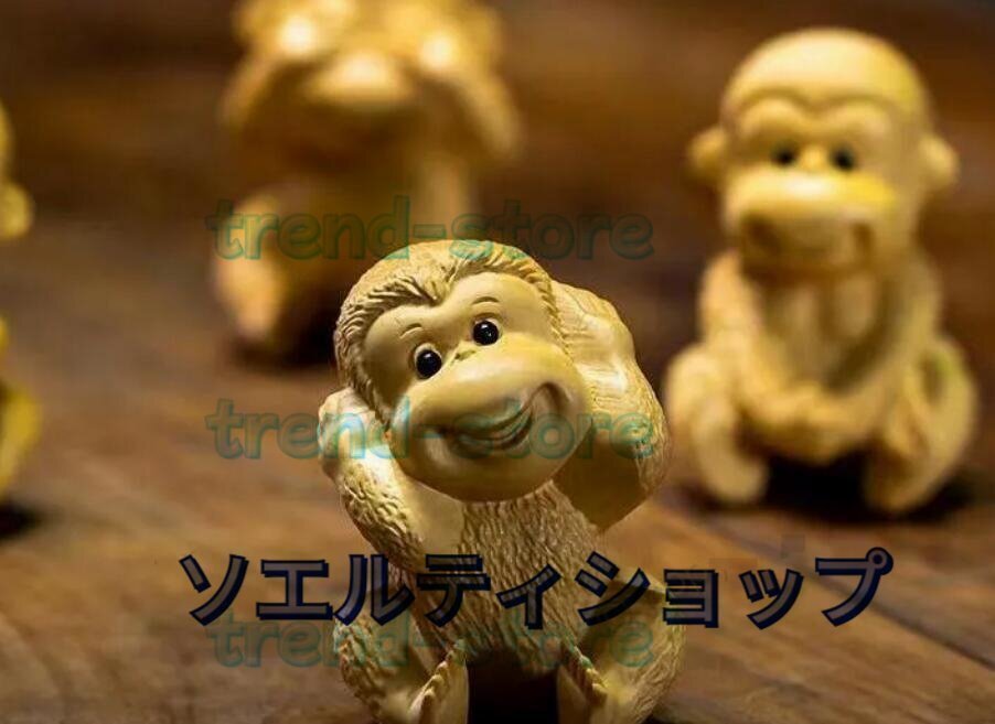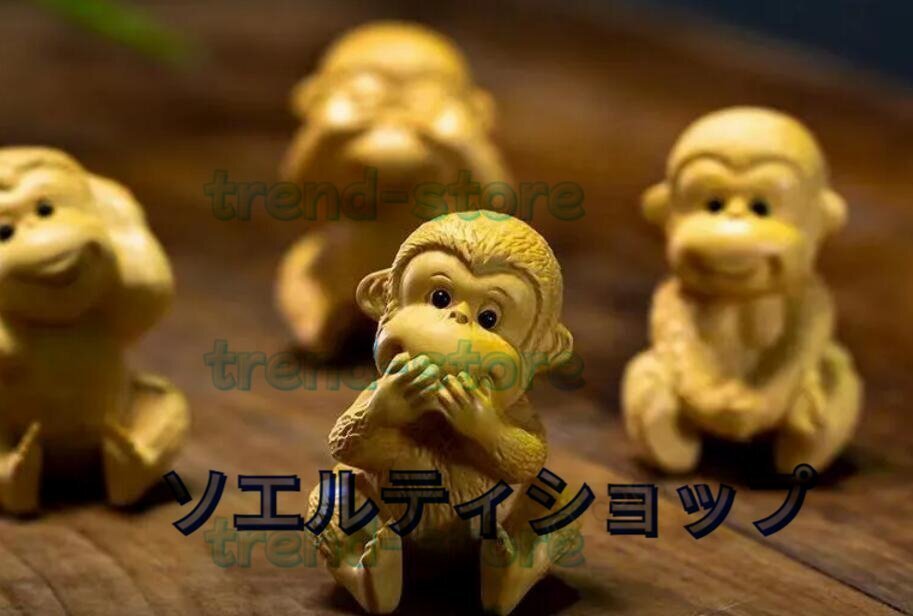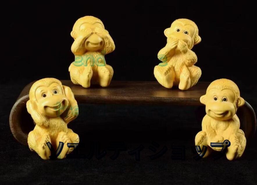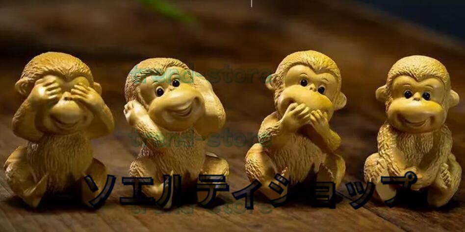 黄楊木彫り彫刻猿の置物四猿