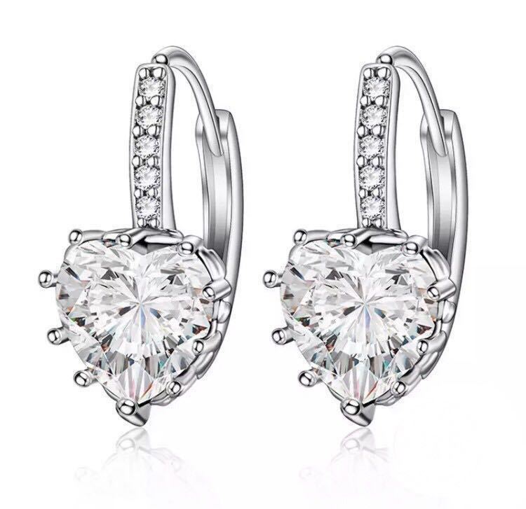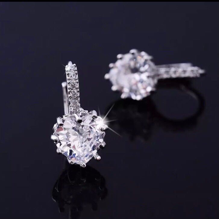 大粒のハートのAAACZダイヤモンドに、小さなCZダイヤをあしらった、華やかなピアスです。