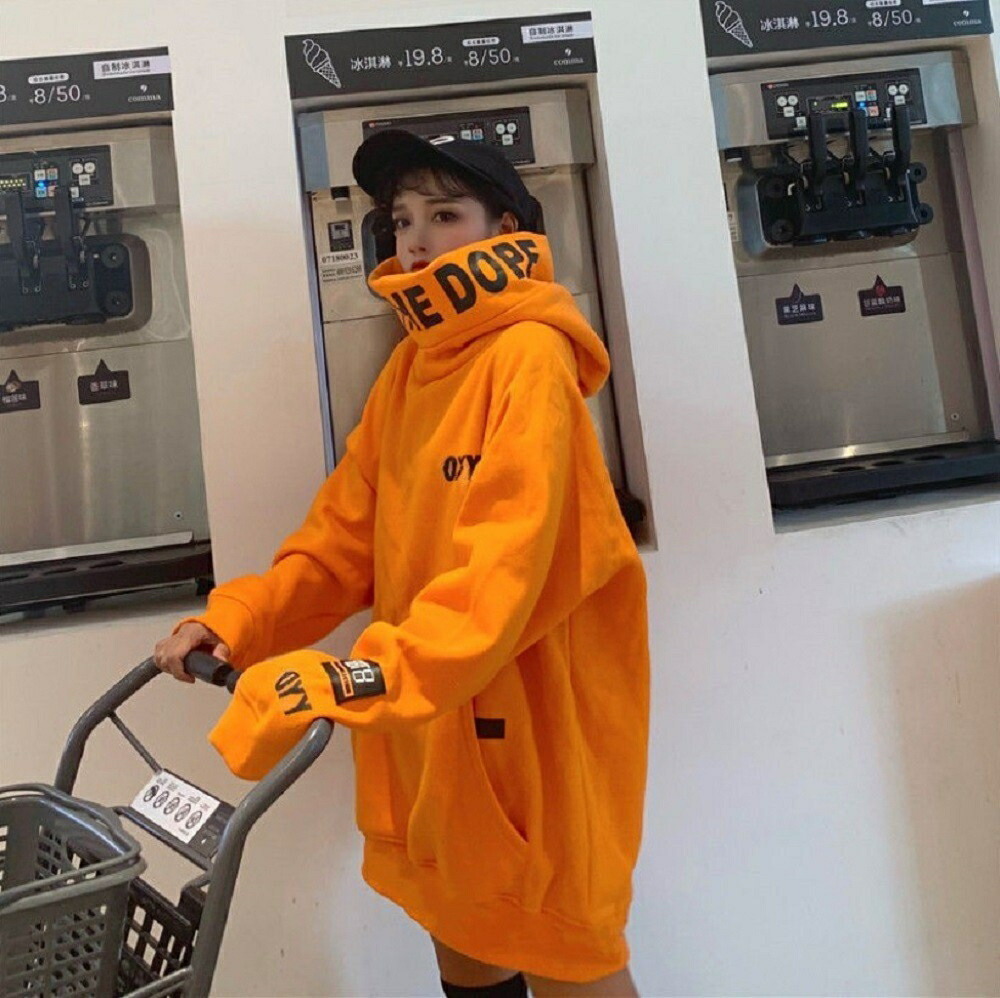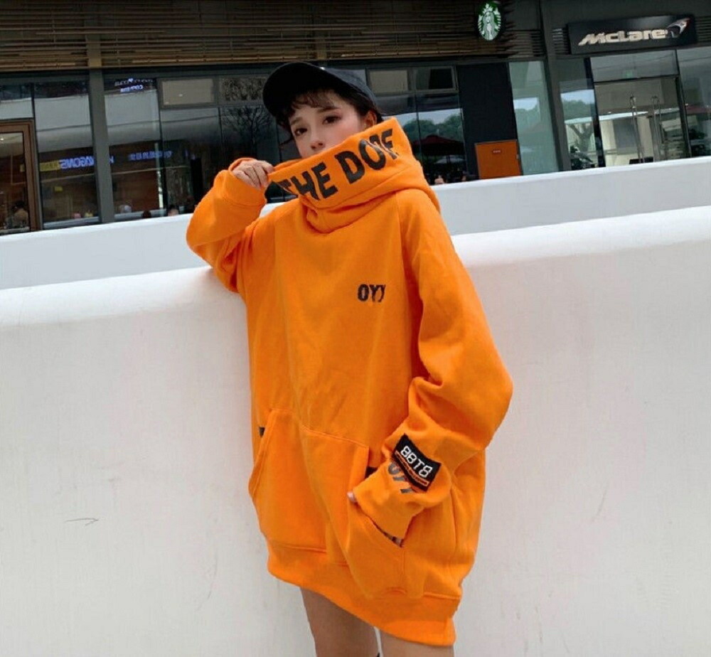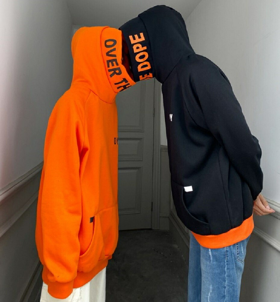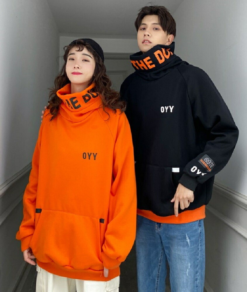 パーカー OYYビッグフードパーカー 韓国ファッション ブラック オレンジ パーカ おしゃれ 服 フード付き ペア カップル 服 メンズ レディース お揃い プレゼント ハイネック k-pop 韓流 韓国 Korean ビックシルエット ビッグシルエット かわいい お洒落 おしゃれ レディース メンズ クラブ Club