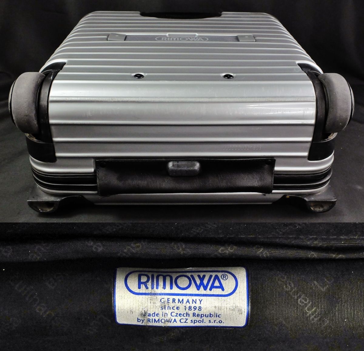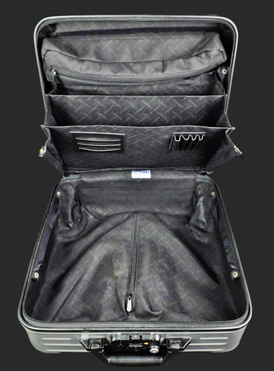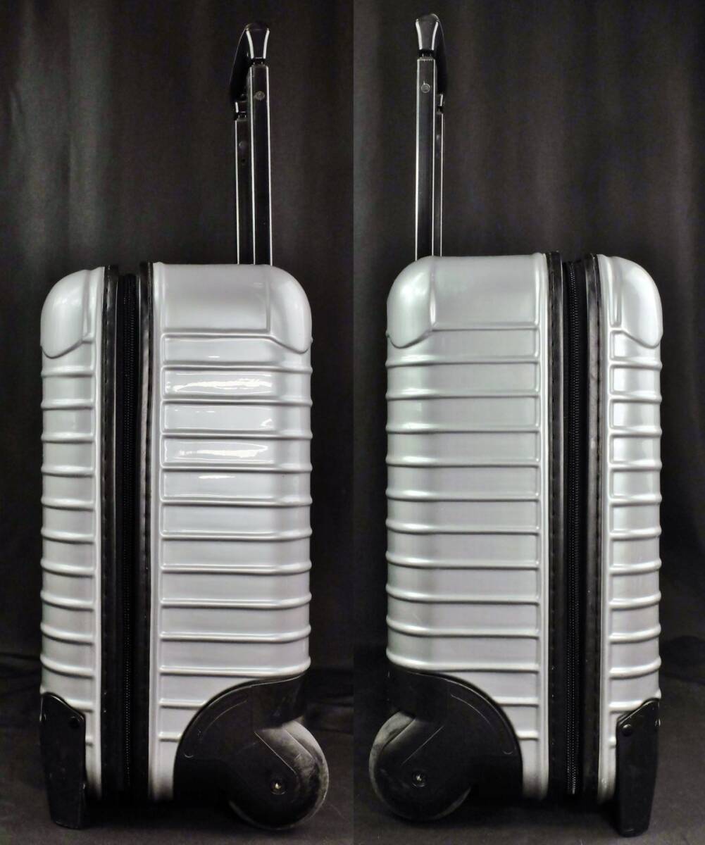 ● RIMOWA リモワの今年提携終了の為入手が困難となった稀少モデルのルフトハンザ・エディションの『サルサ』(エアライト)の805.40ビジネストロリー25Lのシルバーです。●廃盤となったやはり稀少な、勝手に動かず、故障リスクの少ない2輪のサルサビジネストロリーの、しかもポリカーボネートの硬質な深みを感じさせるシルバーのTSA仕様です。●外装には微細な小キズ、僅かな擦れなどは至近では認識可能なものの、クラック、凹み、目立った大きな傷などのないグロス仕上げのシルバーのポリカーボネート特有の硬質な外観がきれいに保たれています。●内装はこのエディション専用のLufthansaのモノグラムのライナーです。着脱式のアコーディオン・デバイダー、エレクトリカルコードポーチが付属しています。●テレスコハンドル、コンビネーションロック、ジップ、ホィールなどに機能的問題はありません。背面のゴムバンドは(入手困難なロゴ入りに)新品交換されておりタイトです。