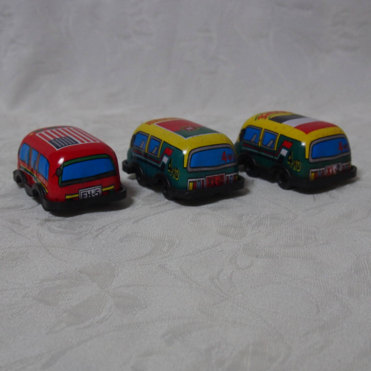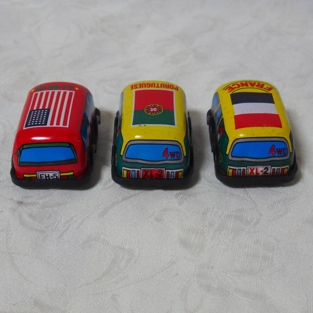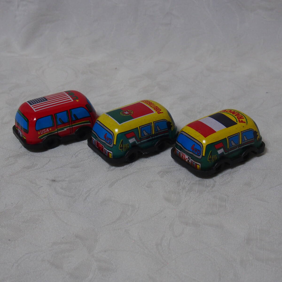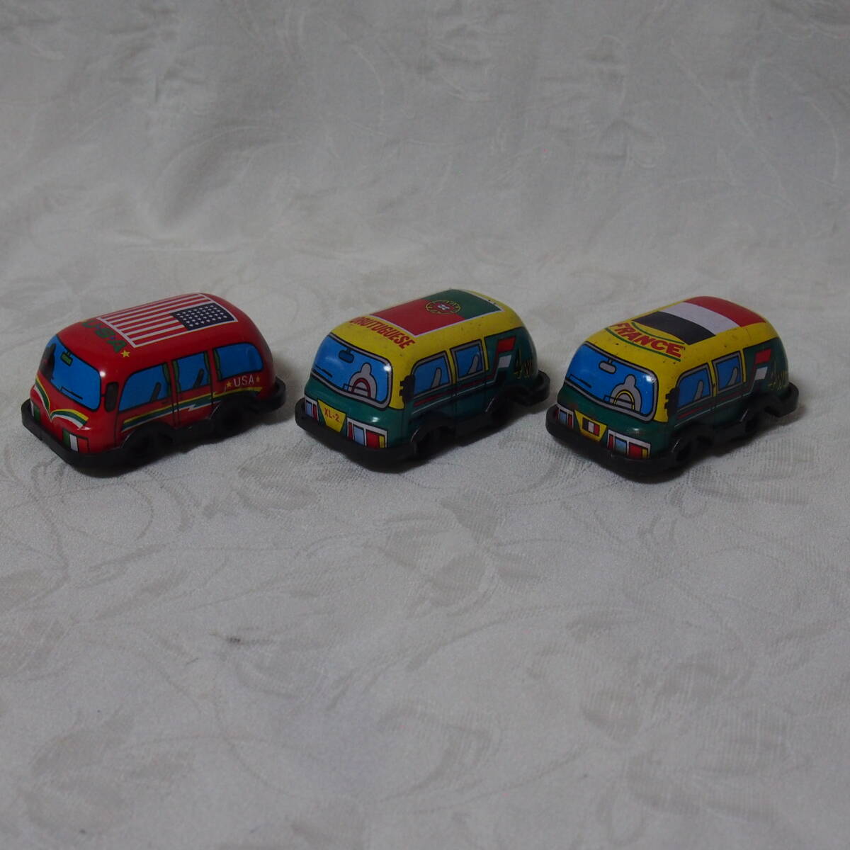 商品説明 ・・・「MADE IN JAPAN 製」 状態良好で状態良好なブリキ製トイ、 手押し式の「色違い・ FRANCE / PORUTUGUESE / U.S.A. 」の3台セット品です。動作の方は、「手押し」で動く仕掛けと成っています。程度の方は、 年代経過に寄る多少なりの使用感・保存感は有りますが、部品欠品も無く、状態の方は写真撮りでご確認下さい。「MADE IN JAPAN 製」 状態良好なブリキ製トイ、 手押し式の「 FRANCE / PORUTUGUESE / U.S.A. 」の3台セット品は如何でしょうか ・・。ちなみに 1個の大きさは 全長 7cm / 幅 4,3cm / 高さ 3,2cm と成っています。