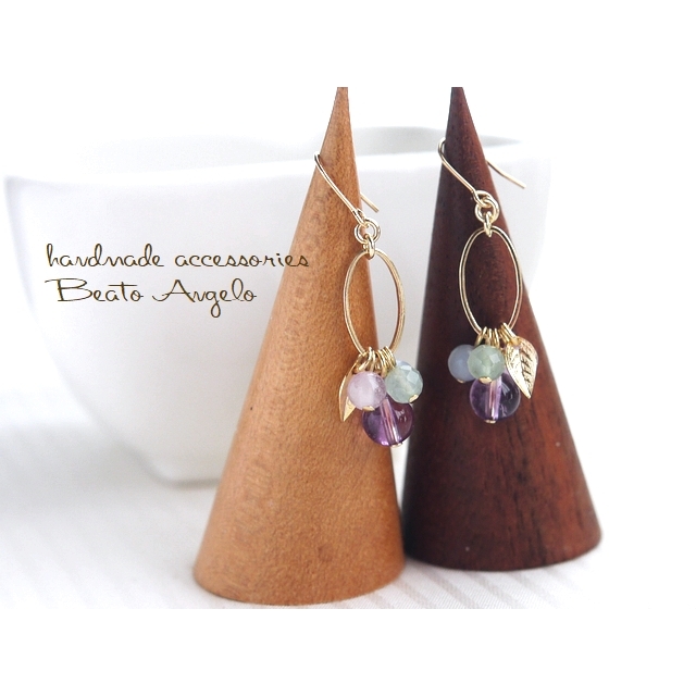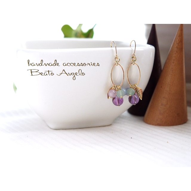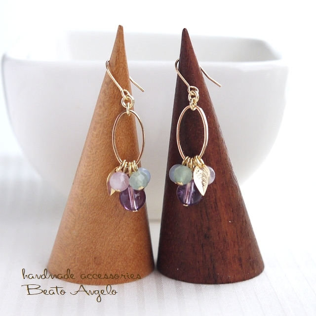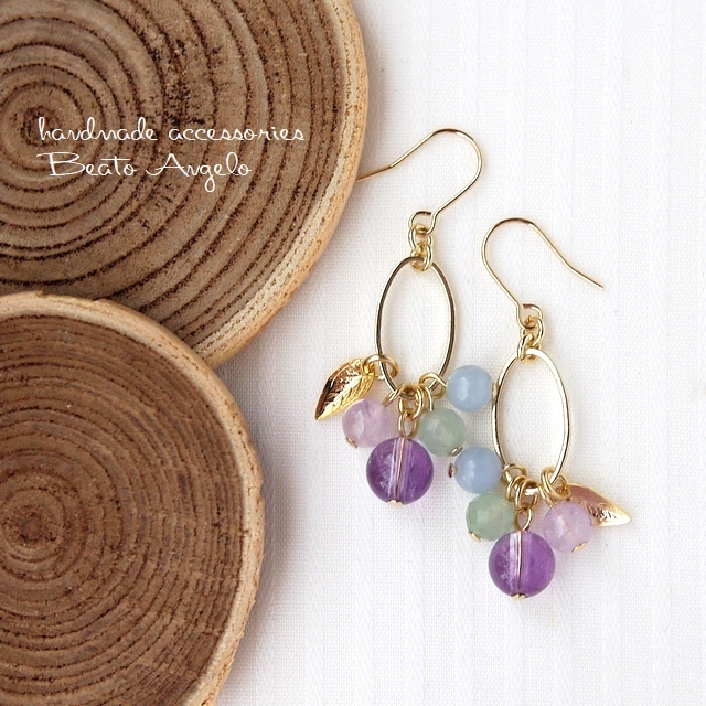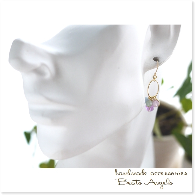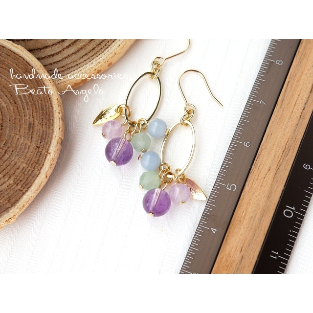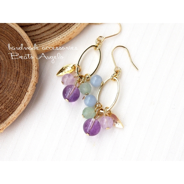 天然石アメジストとエンジェライトのオーバルピアス(p-050)G