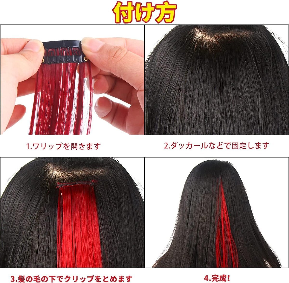 カラー:ブルー(画像2枚目が実際のお写真となります)商品詳細:長さ:約55cm 幅:約3.2cm 同じ色の 10 本セット。透明のケース入り素材構成: 耐熱ファイバー繊維、約150℃までのアイロン、コテ、ドライヤーが使用可能です。人工毛品質:このカラーエクステはとてもサラサラです。また、色彩が鮮やかで、つやつやしています。(ご注意:撮影の光や角度により、多少色収差があるかもしれません。)装着しやすい:クリップ式なので、取り扱いやすいです。また、留め具はパッチンと髪に着けて、髪の毛に優しいです。おしゃれ:気分を転換したいとき、髪全体を染めずに、この一本だけを使えば、オリジナルのヘアスタイルは完成します。