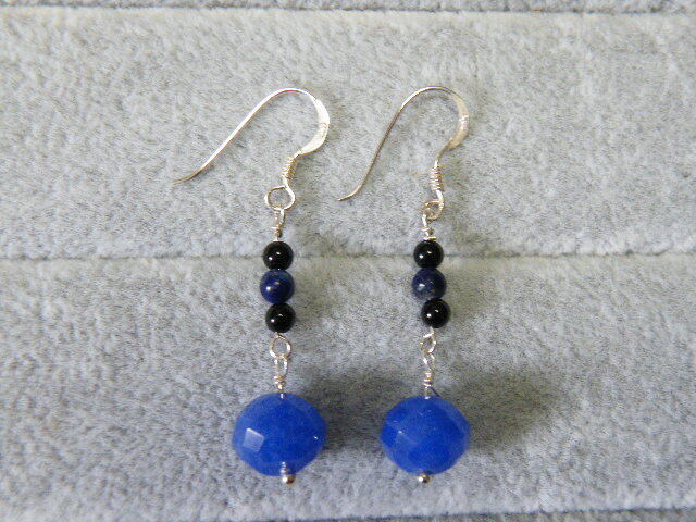 R00054.カラーストン シルバー925 ハンドメイド ロングピアス