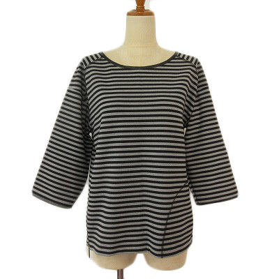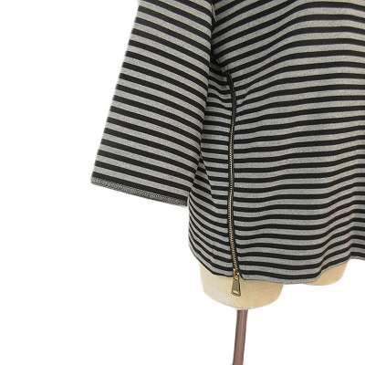 ベアトリス BEATRICE .b カットソー プルオーバー ボーダー サイドジップ S 黒 ブラック グレー レディース