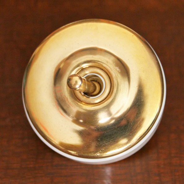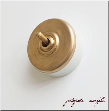 無垢の真鍮と陶器でできた、ころんとまるい上品なスイッチ。