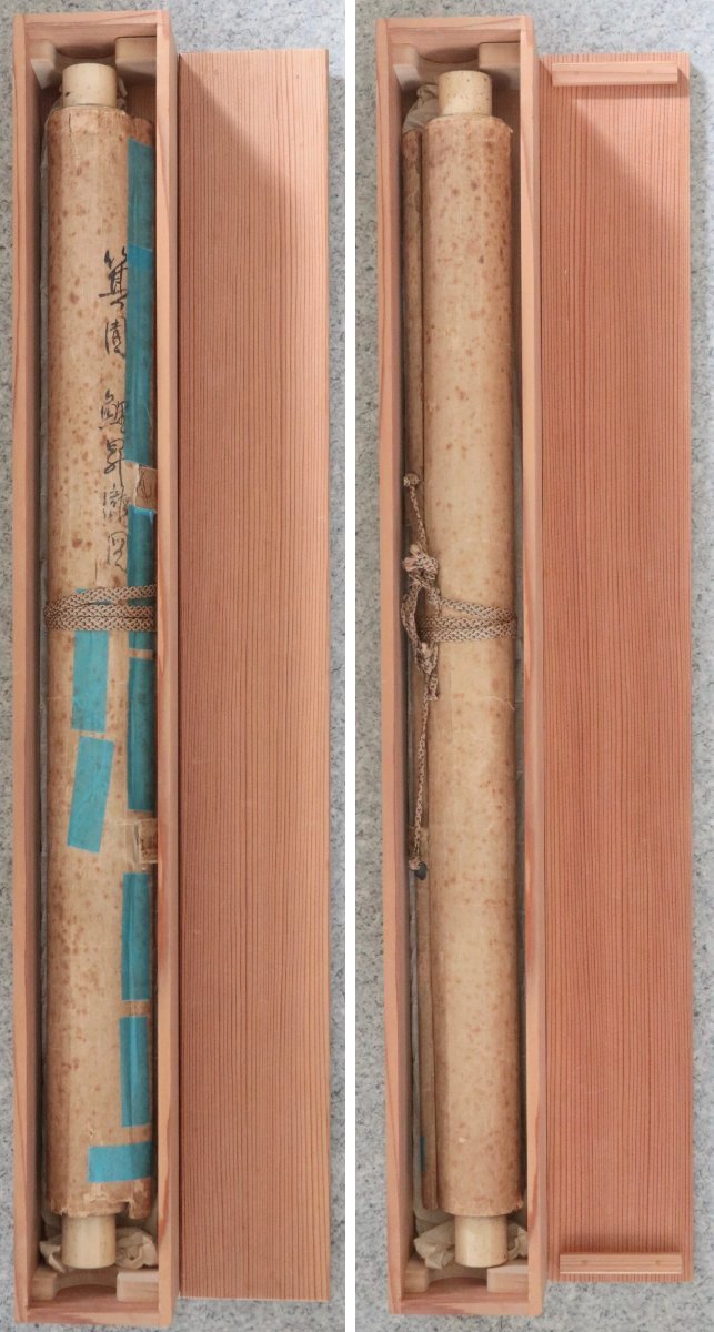 | 表記を十分ご確認の上、ご入札をお願いいたします。 ご不便をおかけいたしますが、どうぞよろしくお願いいたします。 本紙サイズ:横 42×縦 104 cm 表装サイズ:横 54×縦 187 cm 状態:古い物なので、イタミ、ヤブレ(裏面からテープの補修有)、ヤケ、ヨゴレ、シミ、オレ、軸先の欠損あります。また軸のひもが切れています。木箱有、箱にヤケ、キズ、ヨゴレあります。長期保管品の為、軸先が取れる可能性があります。 皆川淇園は、江戸時代中期の儒学者。父は皆川成慶で、実弟に国学者富士谷成章、甥に国学者富士谷御杖がいる。淇園は号で、名は愿、字は伯恭、通称は文蔵、別号に有斐斎がある。生まれは京都。 【印刷ではありません】 -------------------------------------------- 2017年10月25日から施行される「絵画の出品に関するルール改定」により、特定の作者名のある作品につきましては、タイトルに【真作】又は【模写】と表記いたします。 【真作】は、真作と断定した作品 【模写】は、100%真作と断定できない作品 【印刷ではありません】と記載のある作品について 、墨または絵具で書かれた作品と保証するもので、万が一印刷、巧芸品の場合、返品に応じます。(落札後1ヶ月以内) 【真作保証】と記載のある作品について 、所定鑑定人のある作品について、鑑定が通らなかった場合、返品に応じます。(落札後2ヶ月以内) 鑑定料金諸費用、返品時送料等は落札者のご負担にてお願いします。 |