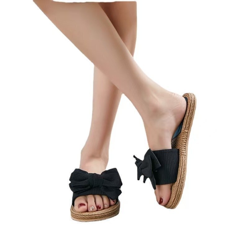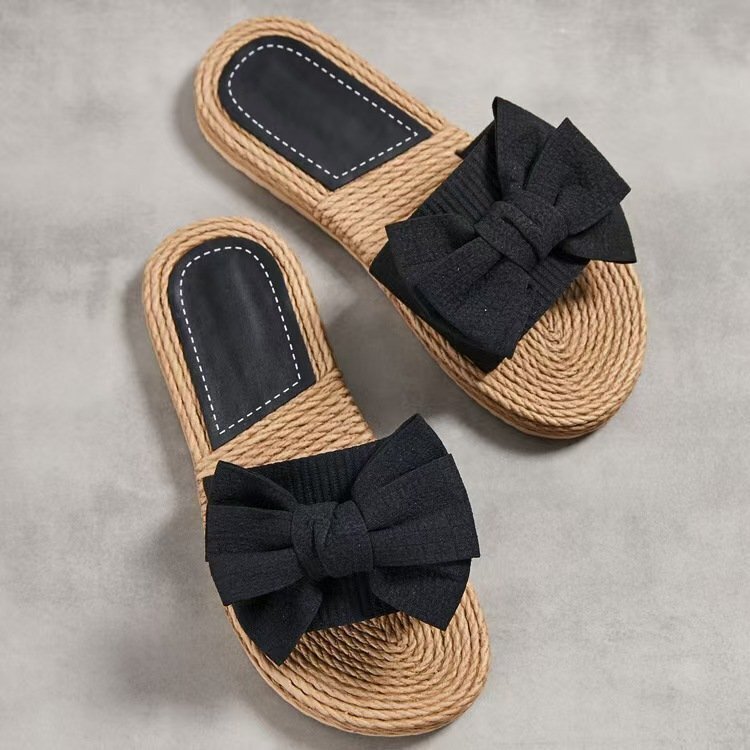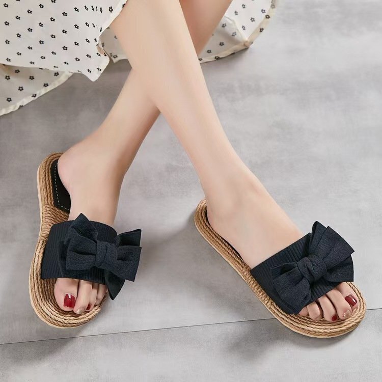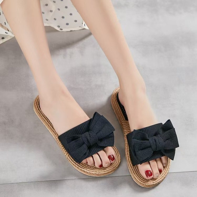 OHJ995☆夏 人気 デザイン サンダル 黒リボン 軽量 蝶結び