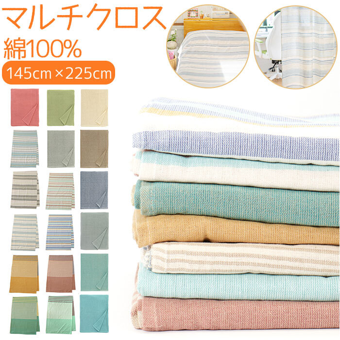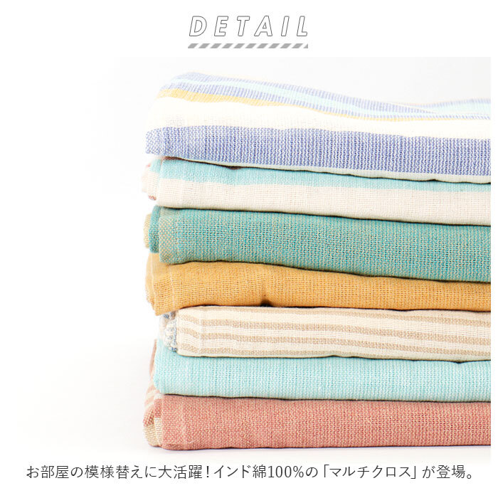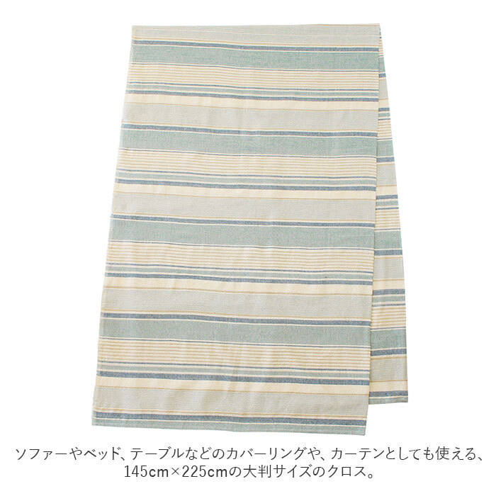 商品説明 | ・・お部屋の模様替えに大活躍!インド綿100%の「マルチクロス」が登場。 ・ソファーやベッド、テーブルなどのカバーリングや、カーテンとしても使える、145cm×225cmの大判サイズのクロス。 ・ざっくりとした素材感がカジュアルな印象。 ・規則的な配色がシンプルで使いやすい、ナチュラルな雰囲気のマルチボーダー。 ・くすみカラーが全体をまとめてくれる、インパクトのあるランダムボーダー。 ・クロスの縁は切りっぱなしではなく、しっかりと縫ってあるので、ほつれを気にせず使えるのが◎ |